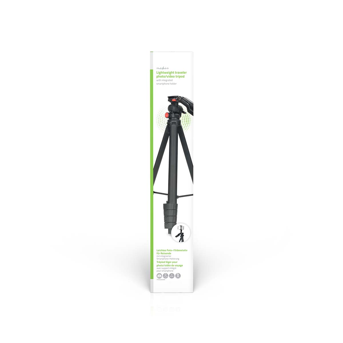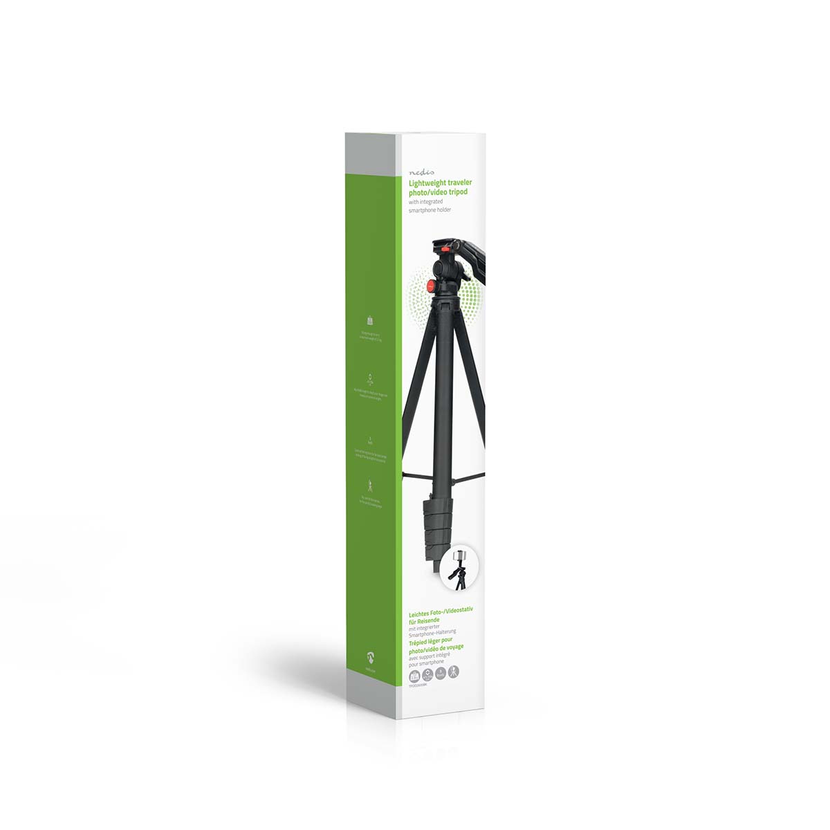 Das leichte Reisestativ von Nedis® ist eine kompakte und vielseitige Lösung für die Fotografie und Videoaufnahme mit Smartphones, Digitalkameras und Videokameras. Es ist ideal für Vlogging, Selfie-Videos, Fotografie, Content-Erstellung und Videoanrufe und bietet zuverlässige Stabilität in einem leichten, tragbaren Design.