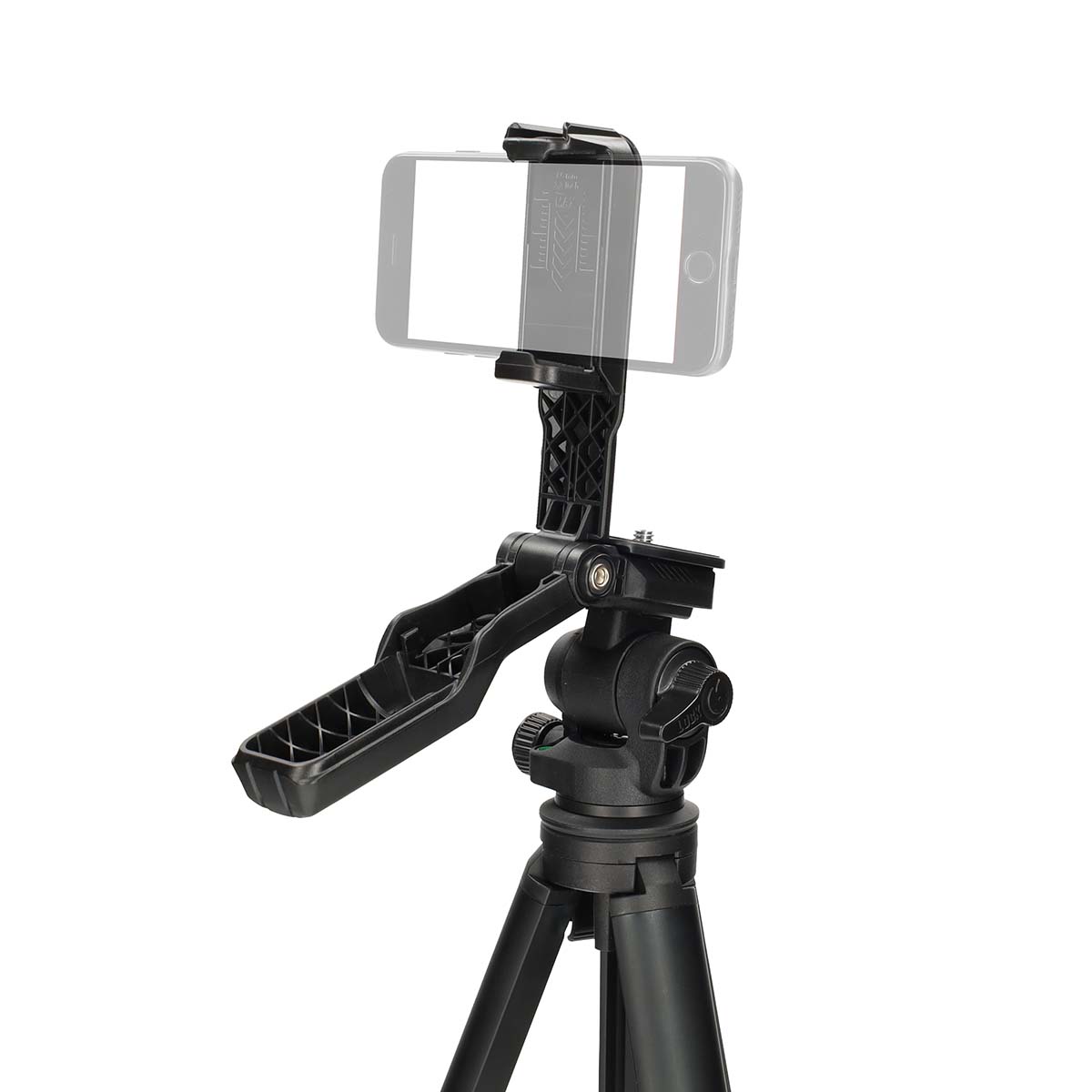 Das Stativ verfügt über eine integrierte Smartphone-Halterung mit einer ausziehbaren Klemme, die für Geräte mit einer Breite von 5,5 bis 9,5 cm geeignet ist und sicher in horizontaler Position gehalten wird. Das 1/4"-Schraubgewinde gewährleistet eine breite Kompatibilität mit den meisten Standardkameras. Eine Schnellwechselplatte ermöglicht den schnellen und einfachen Wechsel zwischen verschiedenen Geräten, während die Wasserwaage an der Basis eine präzise Kameraausrichtung für professionelle Ergebnisse gewährleistet.