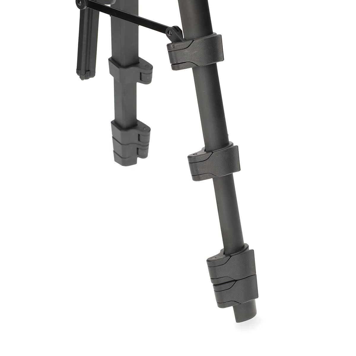 Die 5-Segment-Beine sind mit Schnellverschlüssen ausgestattet, die eine schnelle Einstellung und sichere Arretierung bis zu einer maximalen Höhe von 1545 mm ermöglichen. Die Gummifüße bieten zusätzlichen Halt auf unebenen Oberflächen und sorgen für zusätzliche Stabilität beim Einsatz im Freien oder in wechselnden Umgebungen.
