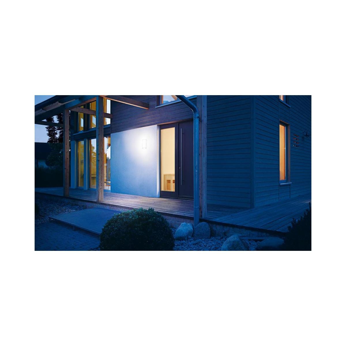 Design-Sensor-Außenleuchte L 22 S mit attraktiver Edelstahlblende, ideal für Hauseingänge und Hausfronten, 180° Erfassungswinkel, Reichweite bis 10 m, Zeit- und Dämmerungsschwelle einstellbar, Sensor vertikal um 90° schwenkbar.