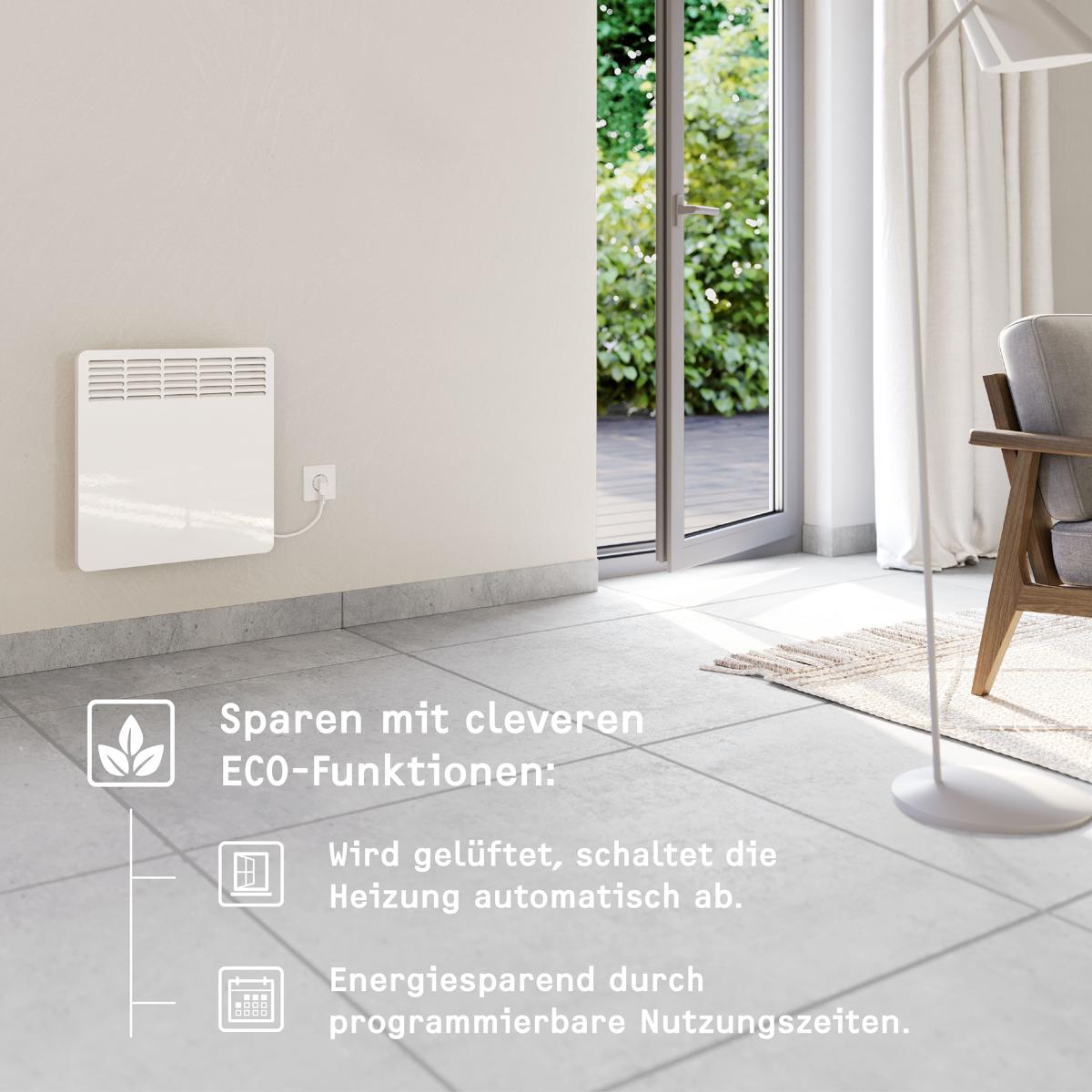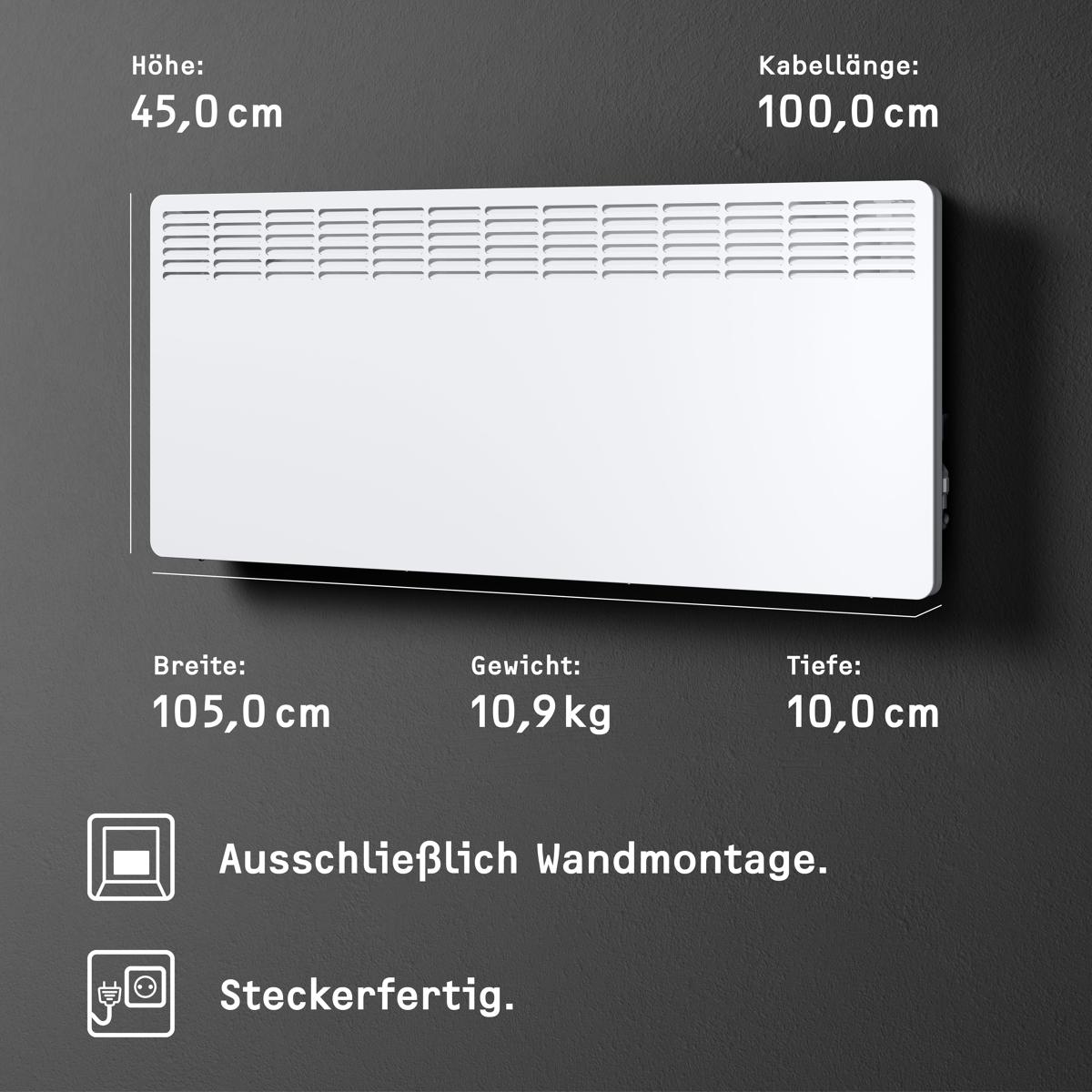 - Wandhängender Konvektor optimal als Zusatz- oder Übergangsheizung