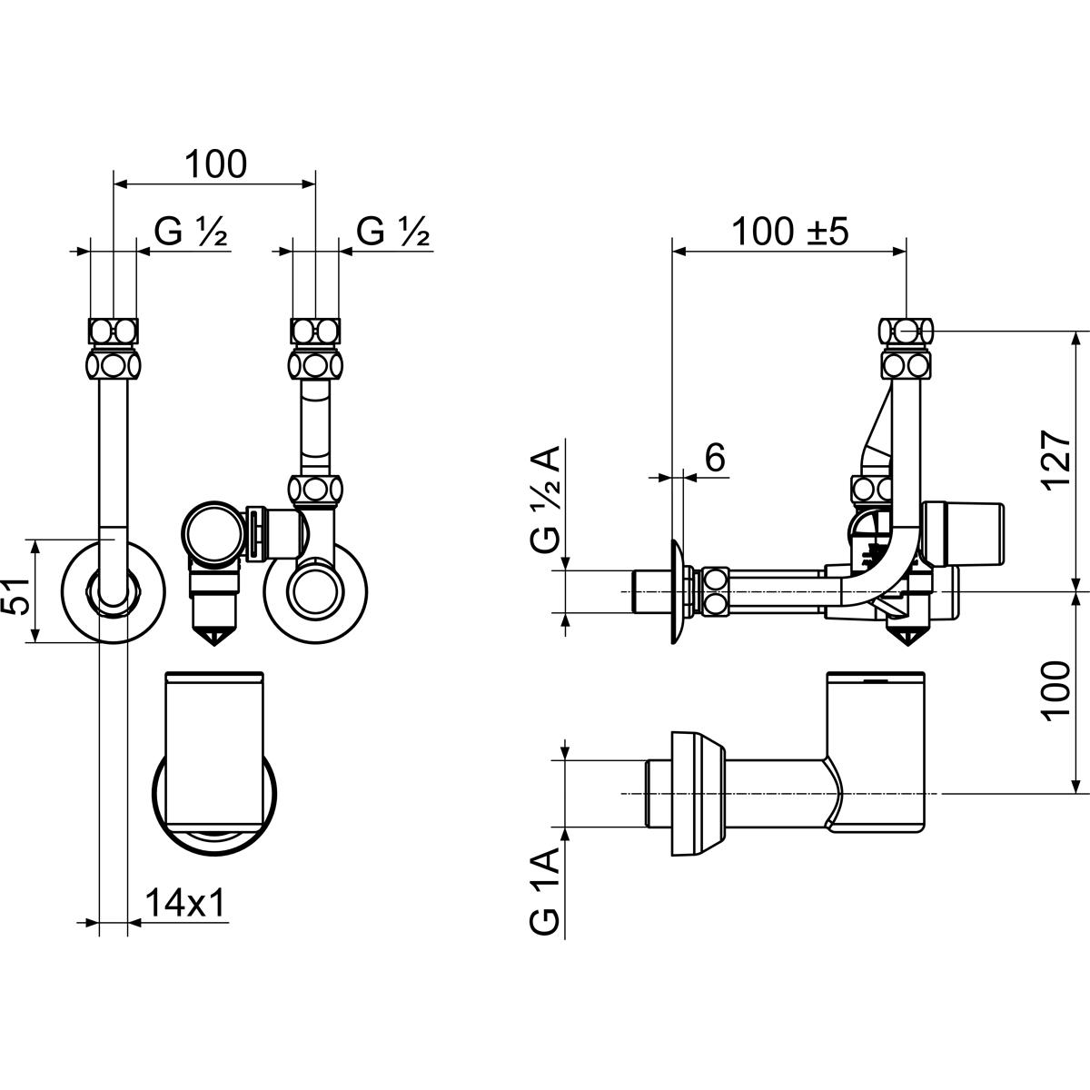 - Doppelnippel mit Überwurfmutter und Wandrosette