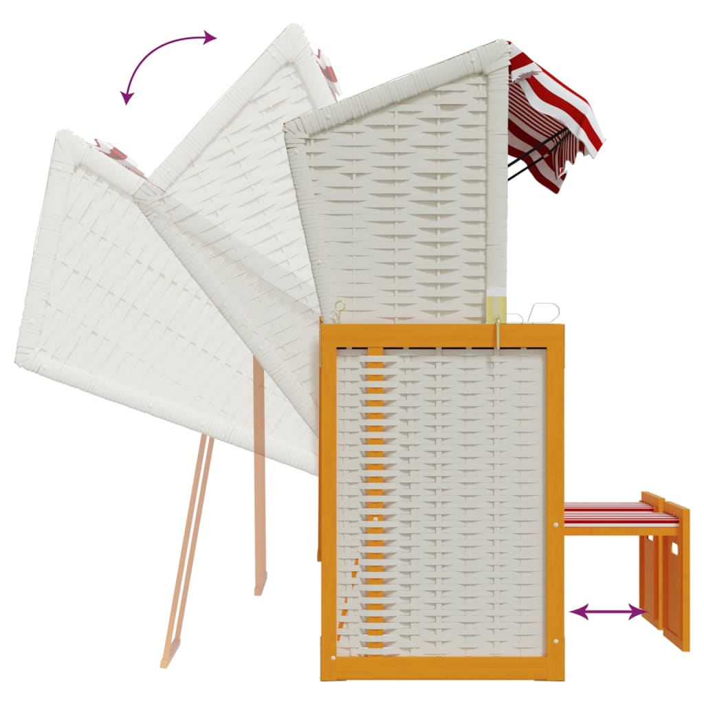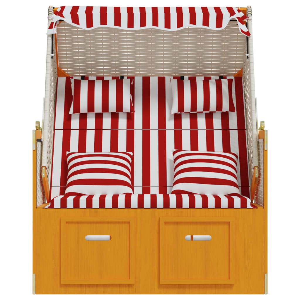 Dieser komfortable Strandkorb bietet einen großen und angenehmen Platz zum Entspannen am Strand, am Fluss oder im Garten. Erstklassiges Material: Mit einem Holzrahmen und einer Klappe aus Poly Ratten versehen, ist die Terrassenliege robust, strapazierfähig und lässt sich mit einem feuchten Tuch einfach reinigen.Praktische Funktionen: Die Strandliege ist mit einem Dach zum Schutz vor der Sonne versehen und lässt sich dank Seitenwände selbst an windigen Tagen verwenden.Ausziehbares Design: Dank der ausziehbaren Hocker sorgt die Sonnenliege für höchsten Komfort.Verstellbare Rückenlehne: Die Rückenlehne des Strandstuhls lässt sich in 3 Positionen verstellen, sodass Sie stets die bequemste Position zum Entspannen finden werden.Komfortables Sitzgefühl: Die mitgelieferten, gut gepolsterten Kopf- und Rückenkissen sorgen für höchsten Sitzkomfort. Hinweis:Um die Lebensdauer deiner Gartenmöbel zu verlängern, empfehlen wir dir, sie mit einer wasserdichten Hülle zu schützen.