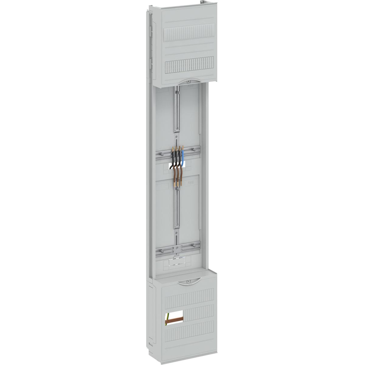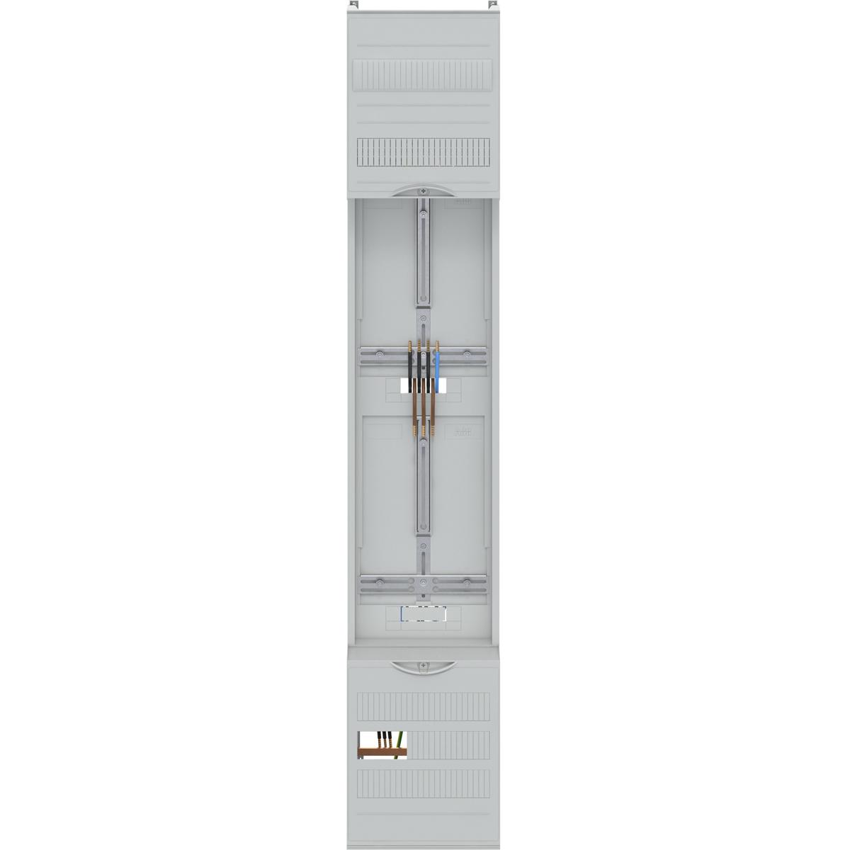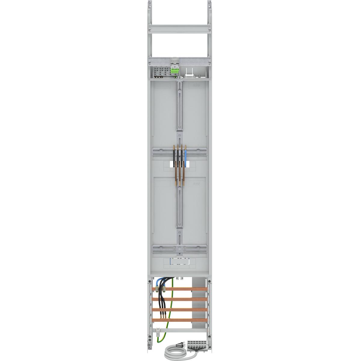 Zählerfeld, Baureihe ComfortLine, passend für Baureihe: ComfortLine A und ComfortLine AD, Komplettfeld, mit Zählerkreuz, Schutzart IP2XC, mit VDE-Prüfzeichen, geltende Normen: DIN VDE 0603-1, Bemessungsstrom In 63 A, in RAL 7035, Abmessungen in mm (H x B x T): 1350 x 250 x 160, Zählerplatz verdrahtet, Netzsystem TN-S, auch für TT-System geeignet, 5-polig, Direktanschluss, mit Kanal für Steuerzwecke, Netzseitiger Anschlussraum Zählerplatz: mit Sammelschiene, vorbereitet für SH-Schalter, Steuerleitungsklemme 7-polig schraubenlos, mit Querverbindungsleitung, Anlagenseitiger Anschlussraum Zählerplatz: mit Hauptleitungsabzweigklemme, Anzahl Zählerplätze 1, Anzahl Reserveplätze 1, Rasteinheit 9 RE, Bauhöhe 5, Feldbreite 1, Platzeinheiten 108, Abdeckungen aus Kunststoff, plombierbarer Schnellverschluss, RAL 7035