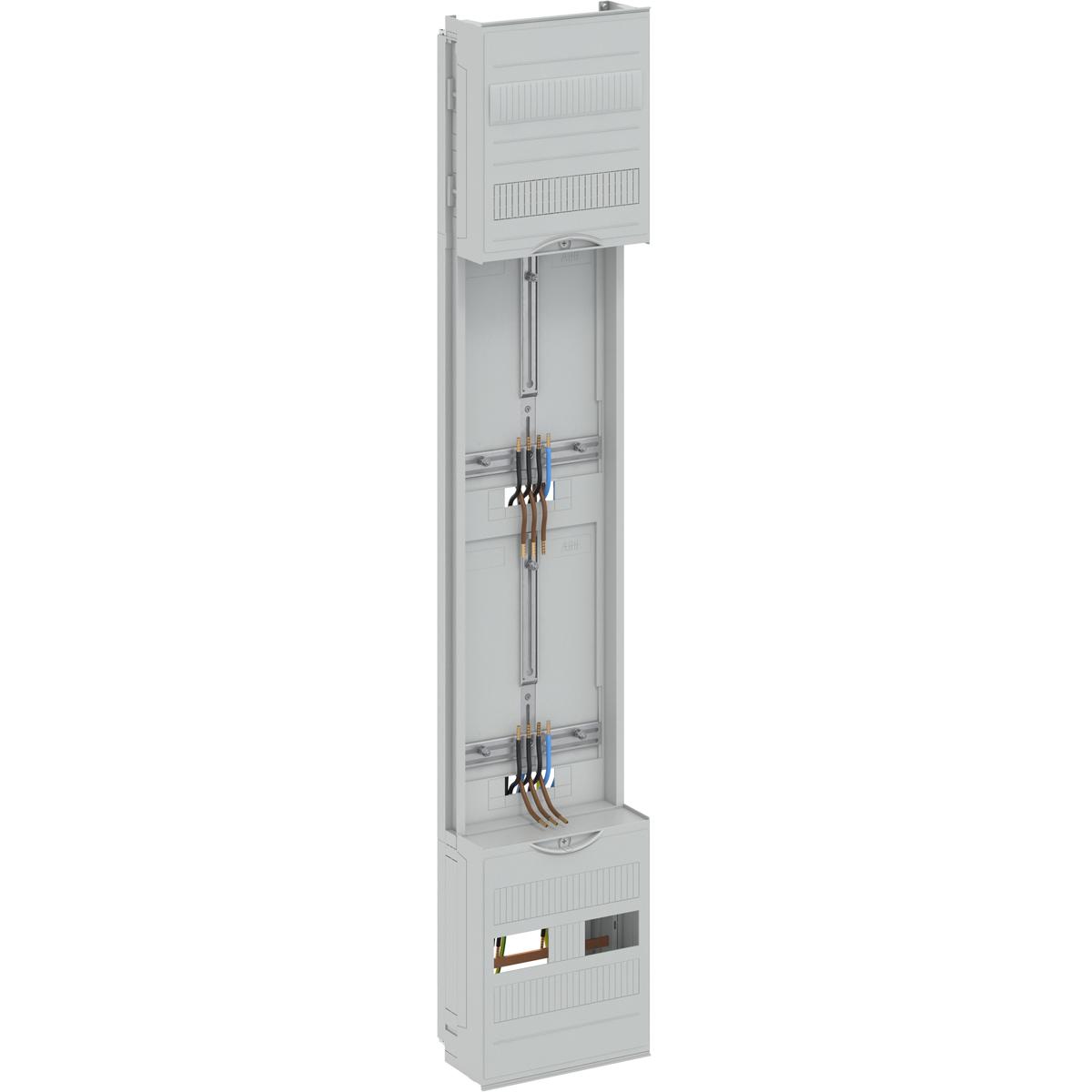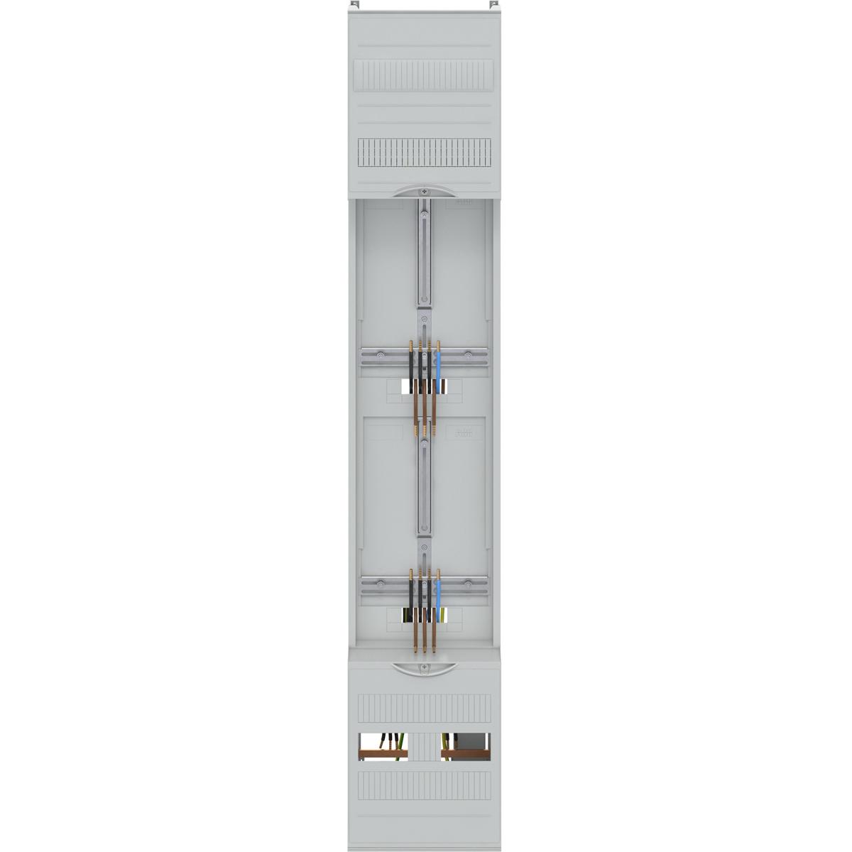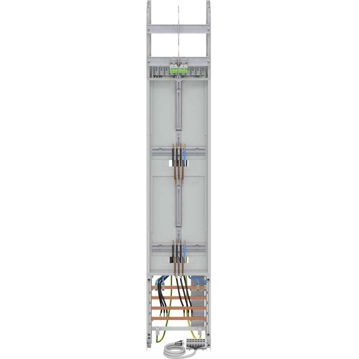 Zählerfeld, Baureihe ComfortLine, passend für Baureihe: ComfortLine A und ComfortLine AD, Komplettfeld, mit Zählerkreuz, Schutzart IP2XC, mit VDE-Prüfzeichen, geltende Normen: DIN VDE 0603-1, Bemessungsstrom In 63 A, in RAL 7035, Abmessungen in mm (H x B x T): 1350 x 250 x 160, Zählerplatz verdrahtet, Netzsystem TN-S, auch für TT-System geeignet, 5-polig, Direktanschluss, mit Kanal für Steuerzwecke, Netzseitiger Anschlussraum Zählerplatz: mit Sammelschiene, vorbereitet für SH-Schalter, Steuerleitungsklemme 7-polig schraubenlos, mit Querverbindungsleitung, Anlagenseitiger Anschlussraum Zählerplatz: mit Hauptleitungsabzweigklemme, Anzahl Zählerplätze 2, Rasteinheit 9 RE, Bauhöhe 5, Feldbreite 1, Platzeinheiten 108, Abdeckungen aus Kunststoff, plombierbarer Schnellverschluss, RAL 7035