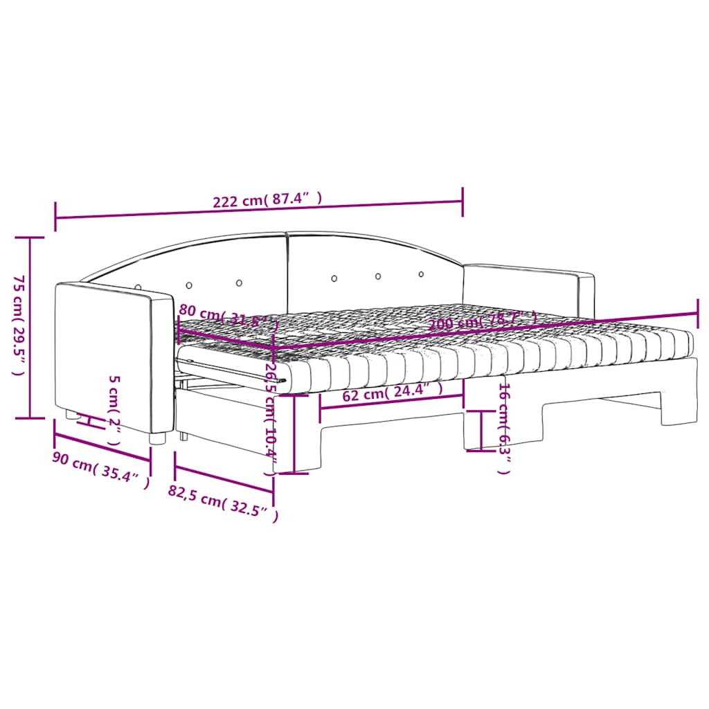 Dieses ausziehbare 2-in-1-Tagesbett mit Matratzen, das sowohl als Sofa als auch als Bett dient, ist eine praktische und auffällige Ergänzung zu deinem Wohn- oder Schlafzimmer. Vielseitiges Tagesbett: Das Schlafsofa fungiert tagsüber als Sofa und lässt sich nachts durch Ausziehen des Rollkastens leicht in ein Doppelbett verwandeln - eine praktische Lösung, um Gästen einen bequemen Schlafplatz zu bieten und den Platz zu maximieren.Komfortable Schaumstoffmatratze: Dieses Schlafbett wird samt zwei Schaumstoffmatratzen geliefert, die für maximalen Halt und optimalen Komfort sorgen. Weicher Samt und robuste Konstruktion: Dieses Schlafsofa besitzt einen stabilen Rahmen aus Holz und Metall und ist mit weichem und bequemem Samt bezogen.