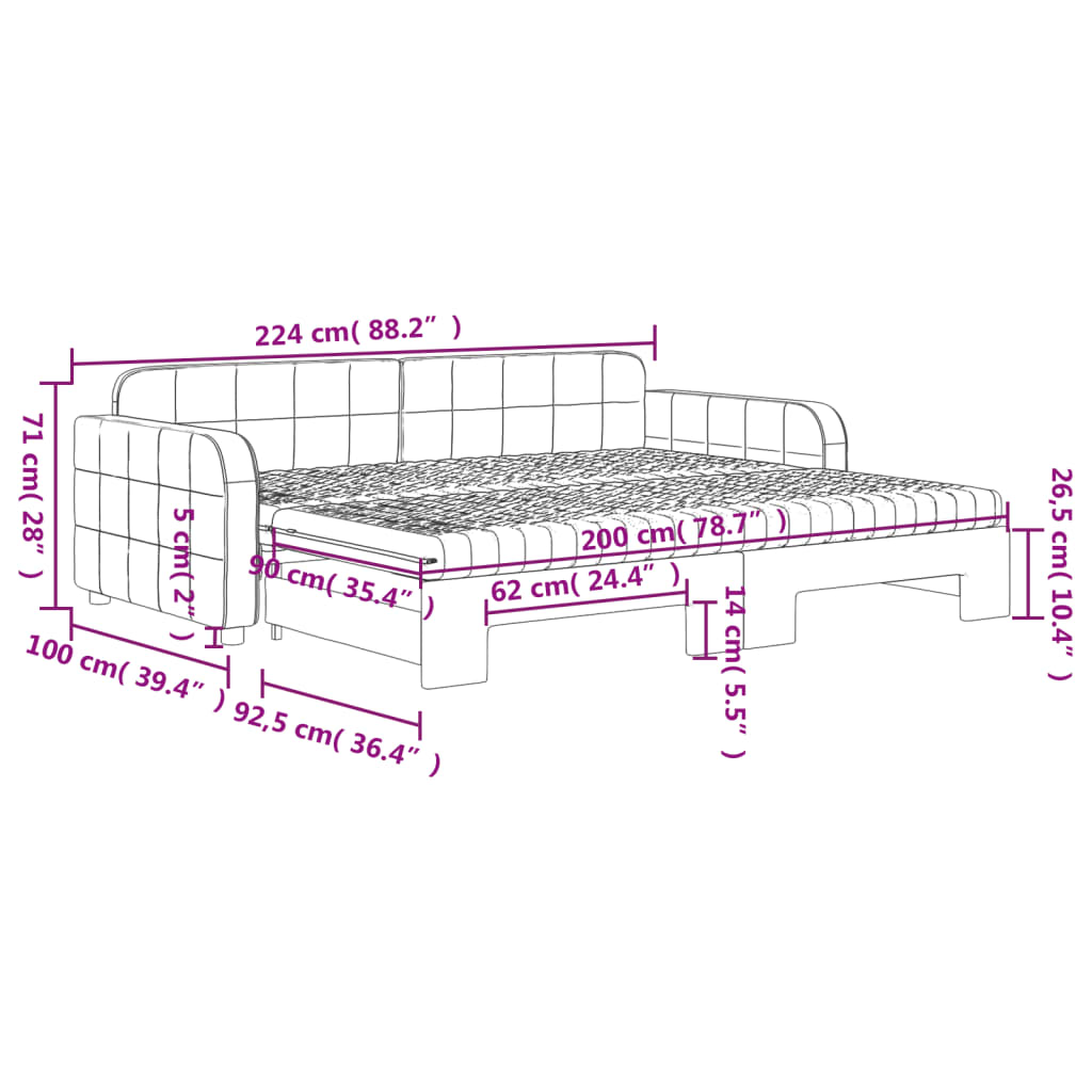 Dieses ausziehbare 2-in-1-Tagesbett, das sowohl als Sofa als auch als Bett dient, ist eine praktische und auffällige Ergänzung zu deinem Wohn- oder Schlafzimmer. Vielseitiges Tagesbett: Das Schlafsofa fungiert tagsüber als Sofa und lässt sich nachts durch Ausziehen des Rollkastens leicht in ein Doppelbett verwandeln - eine praktische Lösung, um Gästen einen bequemen Schlafplatz zu bieten und den Platz zu maximieren.Komfortable Schaumstoffmatratze: Dieses Schlafbett wird samt zwei Schaumstoffmatratzen geliefert, die für maximalen Halt und optimalen Komfort sorgen.Weicher Samt und robuste Konstruktion: Dieses Schlafsofa besitzt einen stabilen Rahmen aus Holz und Metall und ist mit weichem und bequemem Samt bezogen.