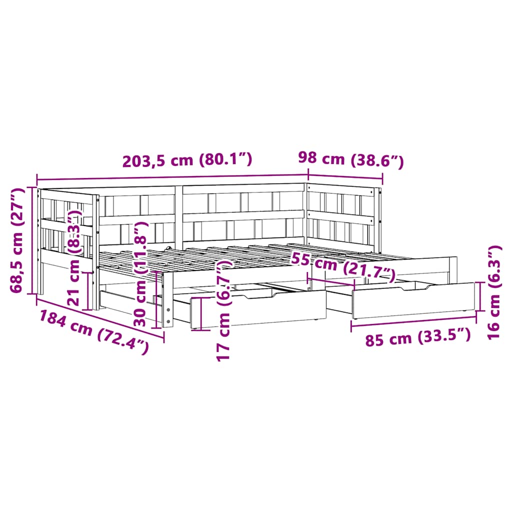 ARDEBO.de - Tagesbett Ausziehbar mit Schubladen ohne Matratze Weiß 90x200cm