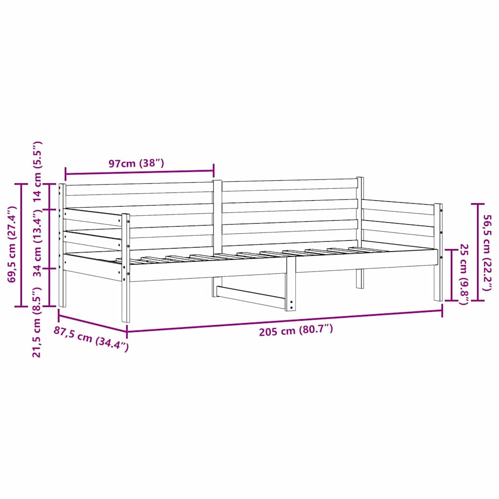 Dieses Tagesbettgestell ist eine schicke Ergänzung für jedes Schlafzimmer und bietet robusten Kiefernholzbau, der modernes Design und praktische Funktionalität vereint. Es wurde als sofaähnliches Bett entworfen, das sowohl Sitz- als auch Schlafoptionen bietet und bringt modernen Stil mit klaren Linien und einfacher Ästhetik mit. Perfekt für alle, die sowohl Stil als auch Nutzen schätzen, eignet sich dieses Tagesbett super für kompakte Schlafzimmer oder als schickes Gästebett für Übernachtungsgäste. Massive Kiefernbauweise Der gesamte Rahmen, inklusive Kopf- und Fußteil, ist aus massivem Kiefernholz und sorgt für eine robuste, zuverlässige Struktur, die jahrelang hält. Kiefernholz bringt eine warme, organische Atmosphäre in jeden Raum. Das macht es zu einer umweltfreundlichen Wahl für hochwertige Möbel. Multifunktionale Nutzung Dieses Tagesbettgestell erfüllt zwei Zwecke: tagsüber eine schicke Sitzgelegenheit und nachts ein gemütliches Bett. Es ist super praktisch und lässt sich problemlos in Ihre Möbel integrieren, ohne Style oder Komfort zu verlieren. Moderne Designelemente Mit klarem Fokus auf moderne Ästhetik hat dieses Tagesbett schlichte Linien, die es zeitgemäß machen. Das unbehandelte, massive Kiefernholz und die quadratischen Beine verleihen ihm ein schlichtes, aber markantes Aussehen, das zu vielen Einrichtungsstilen passt. Praktische Montage Dank klarer Anleitungen und der Notwendigkeit lediglich eines Schraubendrehers ist der Aufbau des Bettes kinderleicht. Zwei Personen sollten dabei helfen, damit alles sicher und korrekt ist. Geringer Pflegebedarf Um das Tagesbett frisch aussehen zu lassen, wischen Sie einfach regelmäßig mit einem trockenen Tuch drüber. Vermeiden Sie scharfe Reinigungsmittel, um die Kiefernholzoberfläche zu schützen und ihren natürlichen Charme zu bewahren.