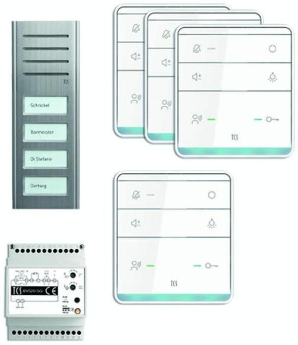 Das Paket ist ab Werk vorkonfiguriert, nicht beliebig erweiterbar mit Innen-, und Außenstationen und nicht durch TCS-Serviceprodukte veränderbar. Die Komponenten unterstützen einen stand-alone-Betrieb ohne funktionale , Erweiterungen