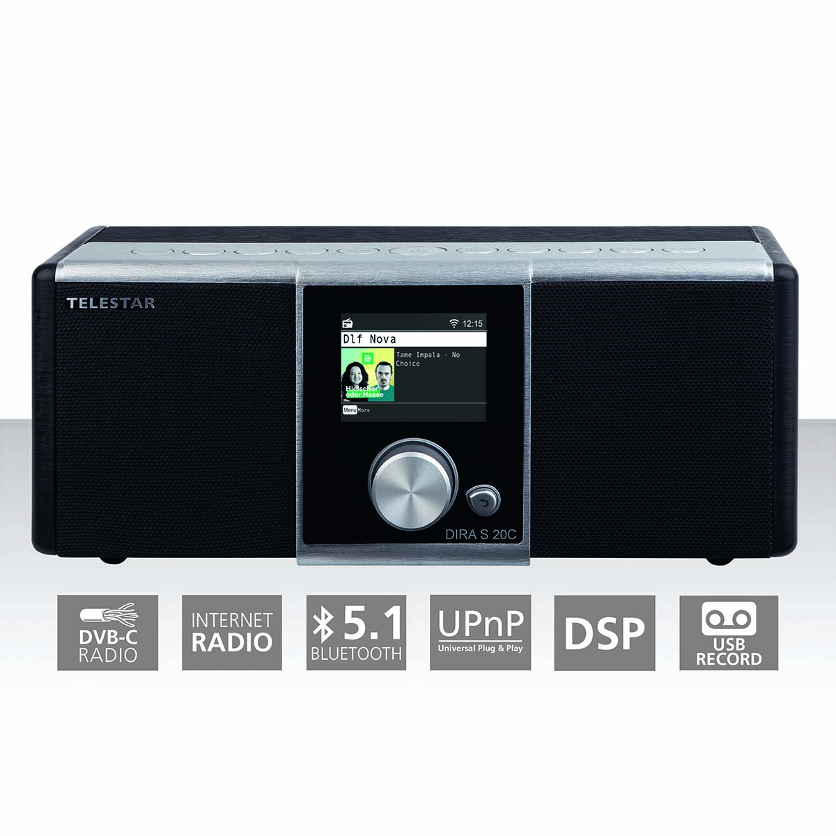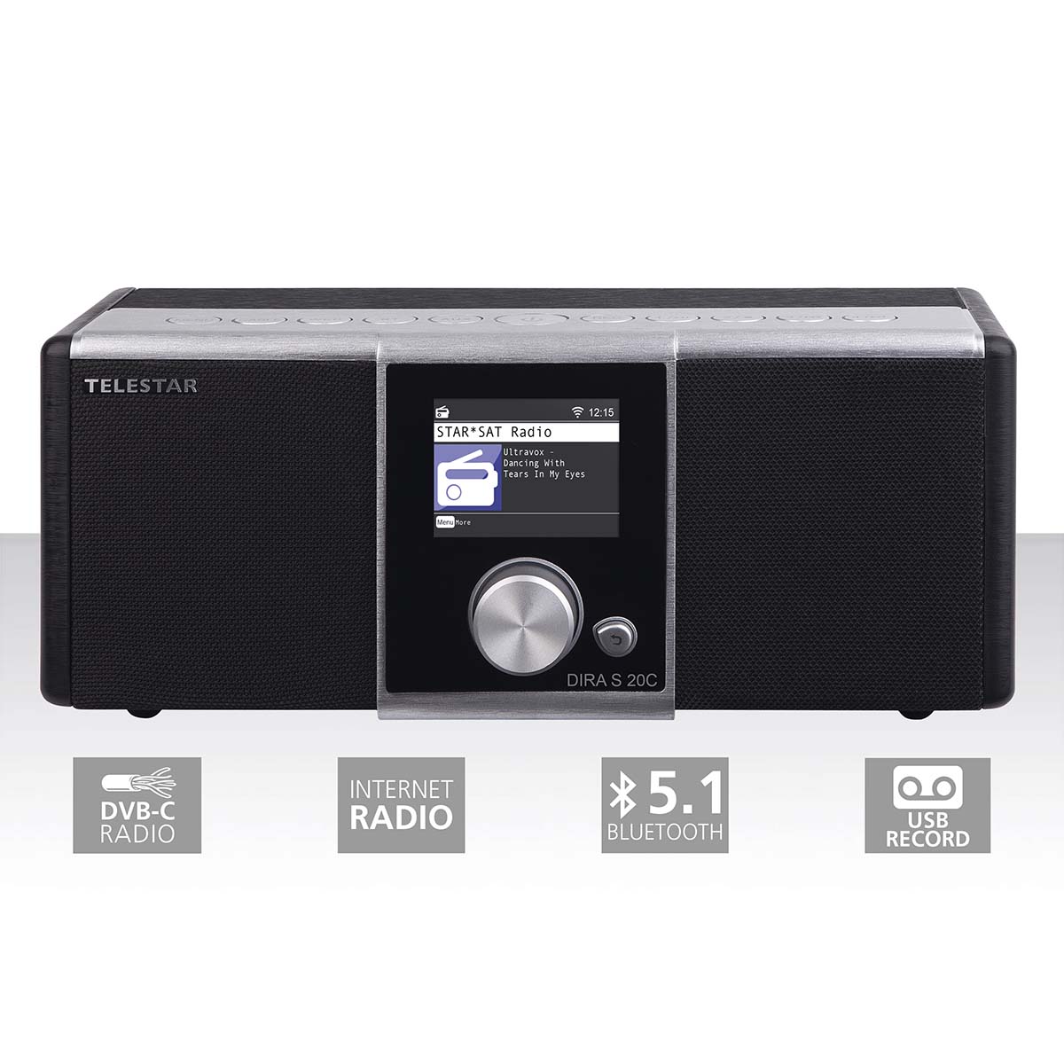 Mit dem DIRA S 20C erweitert TELESTAR seine bekannte Radiolinie um ein weiteres Highlight: Das elegant gestaltete und hochwertige Multifunktions-Stereo-Radio empfängt digitale Radiosender, die über das Kabelnetz (DVB-C) und über das Internet übertragen werden und kann dank UPnP, Bluetooth 5.1 und USB Musikdateien von externen Geräten oder Datenspeichern abspielen.