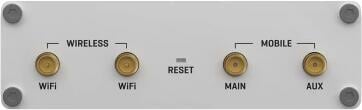 - Antennen: 2 x SMA für LTE, 2 x RP-SMA für WLAN