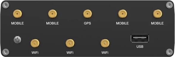 - Antennen: 4 x SMA für Mobilgeräte, 3 x RP-SMA für WLAN, 1 x SMA für GNSS