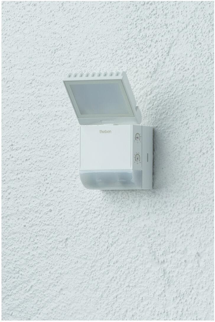 Theben theLeda S8-100 WH LED-Strahler Wandmontage, 8,5 Watt, weiß, 1 LED-Panel, drehbar / schwenkbar, Bewegungsmelder, 4000 K (neutralweiß) 1020800