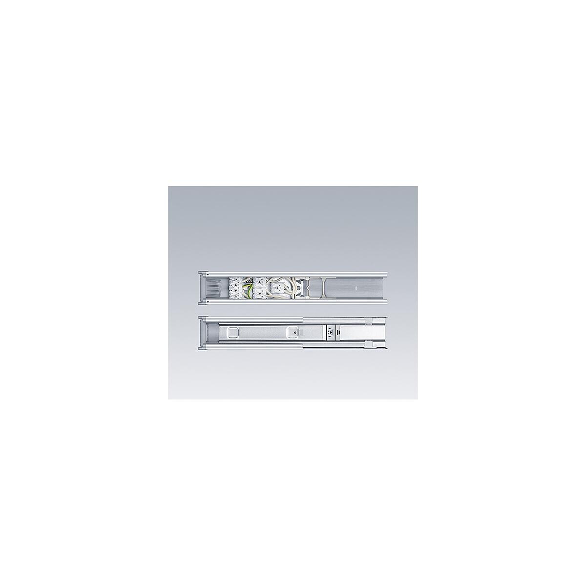 Stromzuführungssatz L500, weiß, aus Profil-Stahlblech für den Stromanschluss der Tragschiene. Satz besteht aus zwei Einheiten: Eine Einheit umfasst die Anschlussklemmen für den Stromanschluss, die andere Einheit ist ein mechanisches Bauteil. Zusammen haben sie eine Länge von 500 mm, so dass die Linie vollständig ausgestattet und mit CONTUS Leuchten bedeckt sein kann. Steckklemmen für 5 Netzleitungen, 2 x 2 Notlichtleiter und 2 Steuerleitungen. Einschließlich Endkappen und Schutzabdeckungen, um eine unbeabsichtigte Berührung der stromführenden Teile zu verhindern.