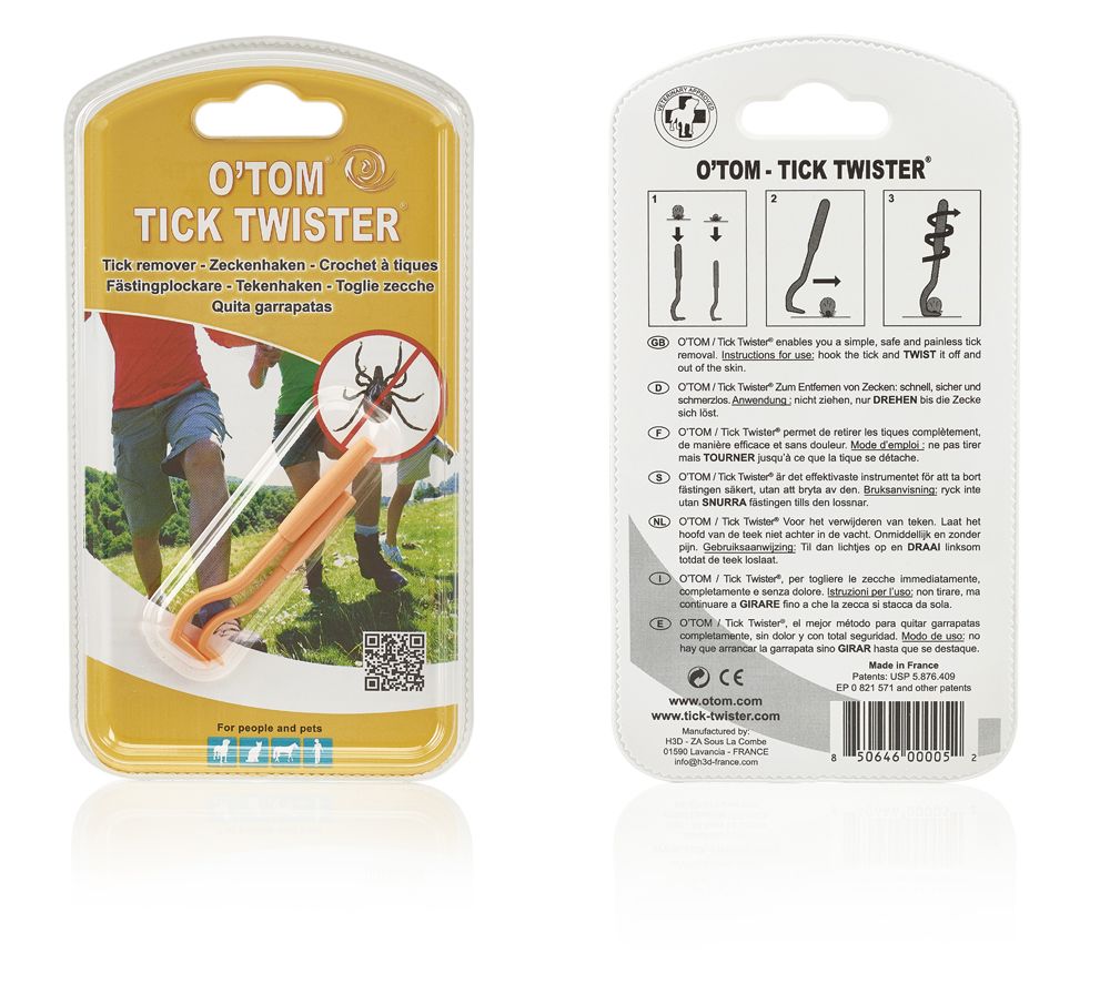 Das Instrument, mit dem Sie alle Größen von Zecken entfernen können - von einem Tierarzt entwickelt.Tick Twister Zeckenhaken sind die beste Methode, Zecken sicher zu entfernen.Oft werden zur Entfernung der Zecke Pinzetten, Zeckenkarten oder Zeckenzangen verwendet. Alle diese Produkte verursachen Druck auf den Körper der Zecke. Diese reagiert mit erhöhtem Speichelfluss, der in den Körper abgegeben wird. Das kann zu Schwellungen und Entzündungen führen. Mit dem Tick Twister Zeckenhaken wird der Bauch der Zecke nicht zerdrückt. Dieser Haken verringert demnach das Risiko einer Übertragung von Krankheitserregern. Der Tick Twister erlaubt Ihnen alle Zecken komplett zu entfernen und lässt keine Mundteile in der Haut.So können sich keine Infektionen oder Entzündungen durch Rückstände entwickeln.Zecken können schwere Krankheiten wie die Lyme-Borrelliose übertragen!Falls sie gebissen wurden - quetschen, verbrennen, betäuben oder töten sie die Zecke nicht vor ihrer Entfernung. Sie sollten keinesfalls an der Zecke ziehen! Entfernen sie die Zecke stattdessen mit einer drehenden Bewegung ohne die Zecke dabei zusammenzudrücken.Warum sollten Sie Tick Twister Zeckenhaken wählen, um die Zecken zu entfernen?Der kleine Zeckenhaken ermöglicht durch seine engstehenden Zangenkiefer die Entfernung sehr kleiner Zecken (ab 1/10 mm). Der große Zeckenhaken ist für große Zecken gedacht.Die Vorteile der Tick Twister Zeckenhaken- lässt keine Mundteile in der Haut- erlaubt Ihnen, die Zecke ohne Druck zu fassen- berücksichtigt auch die Morphologie aller Zecken, egal welcher Größe- erlaubt Ihnen, die Zeckenentfernung bei Mensch und Tier- erfordert keinen Alkohol oder Äther- erlaubt Ihnen, die Zecke schnell und schmerzlos zu entfernen- ist unzerbrechlich, widerstandskräftig und wieder verwendbarDas Hypostom der Zecke (die Mundwerkzeuge, die in die Haut eingeführt werden) ist komplett von Häkchen besetzt, mit denen die Zecke sich in der Haut verankert.Wenn Sie die Zecke aufwärts ziehen, entfalten sich diese Häkchen und klemmen die Mundteile fest in die Haut ein. Das kann dazu führen, dass die Mundteile der Zecke abgerissen werden, was wiederum Schmerzen oder eine infektion auslösen kann.Wenn Sie drehen, klappen die Häkchen in Richtung der Drehachse ein. Damit ist die Zecke leicht zu entfernen, und zwar ohne Zugkraft, was das Risiko eines abgerissenen Hypostoms vermindert.Die Tick Twister Zeckenhaken zerdrücken die Zecke nicht.Es ist grundwichtig, dass man die Zecke bei der Entfernung nicht zerdrückt. Ein Druck auf die Zecke erhöht das Risiko eines Rückflusses von Speichel der mehrere Reizstoffe und manchmal Mikroorganismen enthalten kann, der zu Infektionen und/oder Allergien führen kann.Weitere Vorteile der Tick Twister Zeckenhaken- Made in France- Recyclebares Produkt- Von Tierärzten getestet und anerkannt.- Seit Jahren bekannt aus Presse und TVWie entfernt man Zecken mit dem Tick Twister Zeckenhaken?Zeckenentfernung ist kinderleicht mit den Tick Twister Zeckenhaken, denn diese ermöglichen Ihnen, die Zecken vollständig, schmerzlos und sicher zu entfernen.1. Wählen Sie, je nach Zeckengröße den geeignetsten Haken aus.2. Lassen Sie den Haken einrasten, indem Sie sich der Zecke seitlich nähern, bis sie durch den Haken festgehalten wird.3. Heben Sie den Haken sehr leicht und drehen Sie ihn - die Zecke löst sich nach zwei oder drei Drehbewegungen.Tipps zur Erinnerung- Versuchen Sie nicht, die Zecke zu töten, bevor Sie sie entfernen.- Tragen Sie kein Produkt auf die Zecke auf (Alkohol, Äther, Seife, ätherische Öle ...).- Man darf die Zecke niemals ziehen.- Nach der Entfernung, die Stichzone mit Antiseptikum desinfizieren.Nymphen sind gefährlich für den Menschen!In allen Phasen der Entwicklung Larve, Nymphe, erwachsene Zecke, können Menschen von diesen gebissen werden.Nymphen scheinen für die meisten Übertragungen verantwortlich zu sein.Sie kommen häufiger vor als erwachsene Zecken.Deshalb bleiben sie auch häufig unbemerkt und sind dann schwieriger zu entfernen. Es wird angenommen, dass 80 % der Bisse von Nymphen verursacht werden. Nymphen können aufgrund ihrer geringen Größe unbemerkt bleiben und sind schwieriger zu entfernen.InformationEine Studie des Pasteur-Instituts hat festgestellt, dass die Übertragung von Bakterien sehr schnell innerhalb von 24 Stunden, bei Nymphen sogar schneller erfolgen kann. Wichtig ist es deshalb, eine Zecke sofort nach ihrem Biss zu entfernen.Tick Twister Zeckenhaken sind ein unverzichtbares Werkzeug zum Entfernen sehr kleiner Zecken!Die Tick Twister Zeckenhaken sind medizinische Geräte, mit denen Zecken aller Größen, insbesondere sehr kleiner Zecken, entfernt werden können. Die Entfernung ist schmerzlos und effizient.An die Morphologie der Zecke angepasstEs ist wichtig den Bauch der Zecke während der Extraktion nicht zu komprimieren, da dies das Risiko eines Aufstoßens des Speichels der Zecke und damit das Risiko einer Übertragung, der für die Lyme-Borreliose verantwortlichen Bakterien, erhöht.Lassen Sie den Zeckenkopf nicht in der Haut steckenDrehen Sie mit dem Tick Twister Zeckenhaken einfach die Zecke in die Richtung Ihrer Wahl und die Zecke löst sich nach 2 oder 3 Umdrehungen von selbst. Mit dieser Technik kann die Zecke vollständig entfernt werden, ohne dass das Podium der Zecke in die Haut gepflanzt wird und dort verbleibt.Einfach, praktisch und an alle Situationen anpassbarMit dem Tick Twister Zeckenhaken können Sie Zecken unabhängig von ihrer Position (Nabel, Kniefalten, Achselhöhlen, hinter den Ohren) und ihrer Größe entfernenMikro: Larve und PuppeKlein: erwachsene ZeckeGroß: vollgestopfte Zecke für ErwachseneKeine ChemikalienMit dem Tick Twister Zeckenhaken, müssen keine Chemikalien (Alkohol, Äther ...) verwendet werden, um die Zecke zu entfernen. Hergestellt in FrankreichDie Tick Twister Zeckenhaken werden in Frankreich entwickelt, hergestellt und verpackt.ÖkologischDie Zeckenhaken Tick Twister sind u