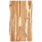 Diese spektakuläre, schlichte Tischplatte aus Holz verleiht Ihren Tischen, von Küchentischen über Couchtischen bis hin zu Schreibtischen, mehr Stil, Eleganz und Funktionalität. Diese Tischplatte besteht aus massivem Akazienholz, einem tropischen Hartholz, das dicht, robust und langlebig ist. Das Akazien-Massivholz ist poliert, gestrichen und lasiert, um vor Feuchtigkeit geschützt zu bleiben. Die Tischplatte ist aus einem Baumstamm gefertigt und verfügt über eine natürliche Holzkante, welche die Schönheit des Holzes unterstreicht. Jede unserer Tischplatten ist ein Unikat. Holzmaserung und Kanten können leicht variieren.