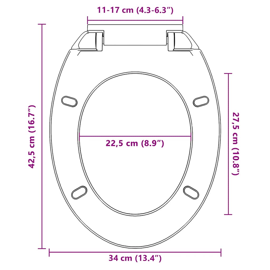 Dieser hochwertige Toilettensitz, der zu allen gängigen WC-Schüssel passt, ist die ideale Wahl für Ihr Zuhause, aber auch für Restaurants, Warenhäuser und Hotels. Der Sitz ist aus starkem Polypropylen gefertigt und ist daher äußerst stabil und langlebig. Der Sitz verfügt über eine Soft-Close-Funktion, d.h. er schließt langsam und leise. Es verfügt über einen Schnellverschluss, sodass der Sitz bei Bedarf leicht entfernt werden kann. Der Sitz ist leicht zu reinigen und mit oberen Scharnieren und korrosionsfreien Beschlägen schnell zu montieren.