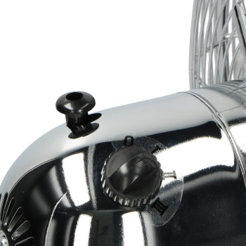 Der besondere Designaspekt dieses kompakten Ventilators ist sein metallischer Vintage-Look. Aufgrund dieses Looks fügt sich dieser Ventilator perfekt in jedes Interieur ein.