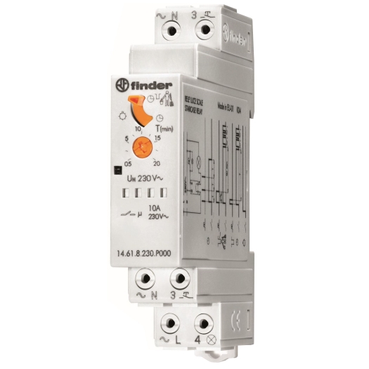 Finder Treppenhaus-Lichtautomat mit Push-In-Klemmen, Vorwarn- u. Servicefunktion, 1 Schließer 10 A, für 230 V AC