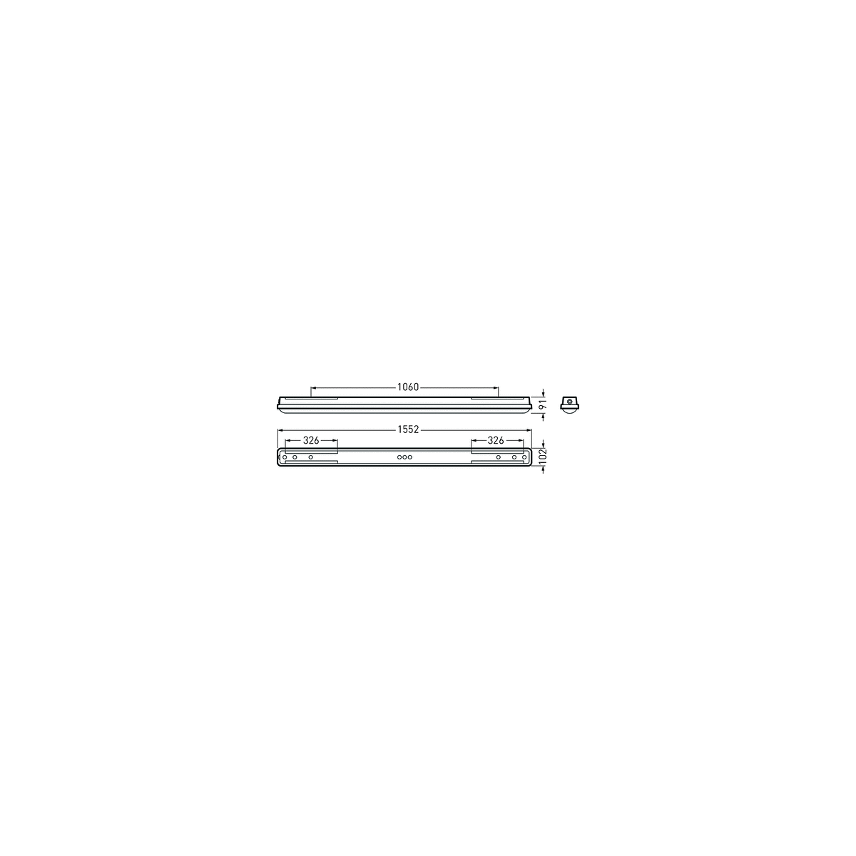 Leuchtenkörper aus PC. Leuchtenkörper Farbe lichtgrau (RAL 7035). Mit Cliplos-Verschlusstechnik zur schutzartgerechten, einfachen Montage von Diffusor-Abdeckwanne und Leuchtenkörper nach dem Anschluss. Maße (L x B): 1552 mm x 102 mm, Leuchtenhöhe 91 mm. Zulässige Umgebungstemperatur (ta): -20 °C - +35 °C.