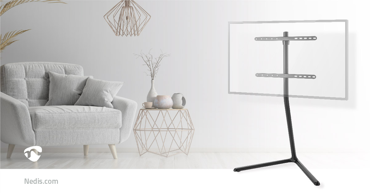 Dieser Nedis Standfuß für Fernseher besticht durch sein elegantes und künstlerisches Erscheinungsbild und fügt den Fernseher in Ihren Wohnbereich ein. Dieser TV-Standfuß im modernen Stil der Jahrhundertmitte verfügt über einen schrägen Säulenkörper, der durch einen stützenden, V-förmigen Fuß stabilisiert wird. Aus einer Metall-Aluminium-Konstruktion gefertigt und beschichtet. Er ist geeignet für große TV-Bildschirme von 49 bis 70 Zoll und trägt bis zu 40 kg schwere Fernseher. Das eingebaute Kabelmanagement verhindert unordentliche Kabel um den Fernseher herum und hält den Bereich aufgeräumt.