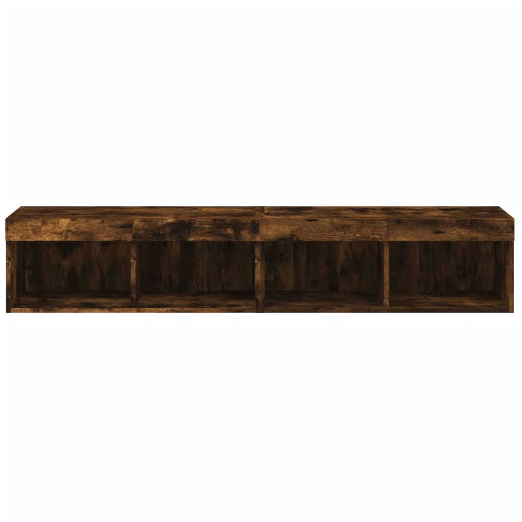 Mit ihrem trendigen und dennoch praktischen Design werden diese TV-Schränke mit LED-Leuchten echte Hingucker in deinem Zimmer sein. Langlebiges Material: Holzwerkstoff ist ein Material von außergewöhnlicher Qualität mit glatter Oberfläche, das sich durch Festigkeit, Stabilität und Feuchtigkeitsbeständigkeit auszeichnet. Aus Holzwerkstoff gefertigt, sind diese TV-Schränke robust und langlebig.Reichlich Stauraum: Die TV-Schränke bieten reichlich Stauraum, um DVD-Player, Empfänger, CDs und andere Kleinigkeiten gut organisiert und in Reichweite aufzubewahren.RGB-LED-Leuchten: Diese TV-Schränke sind mit RGB-LED-Leuchten ausgestattet, die über verschiedene Menüs verfügen, um die Farbe der Lichter zu wechseln und sie automatisch einzustellen.Wandmontage: Diese TV-Schränke lassen sich an der Wand montieren, um zusätzlichen Stauraum zu schaffen. Auf diese Weise kannst du deine Bodenfläche maximieren und für Ordnung im Raum sorgen. Gut zu wissen:Schrauben und Dübel für die Innenseite der Wand sind nicht enthalten. Wir empfehlen dir, Schrauben und Dübel zu finden und zu verwenden, die speziell für deine Wände geeignet sind. Wenn du dir nicht sicher bist, kannst du dich an einen Fachmann wenden. Bitte lies und befolge jeden Schritt in der Anleitung.Das Produkt verfügt über einen USB-Anschluss, für den eine zertifizierte 5V-USB-Stromquelle erforderlich ist (nicht im Lieferumfang enthalten).