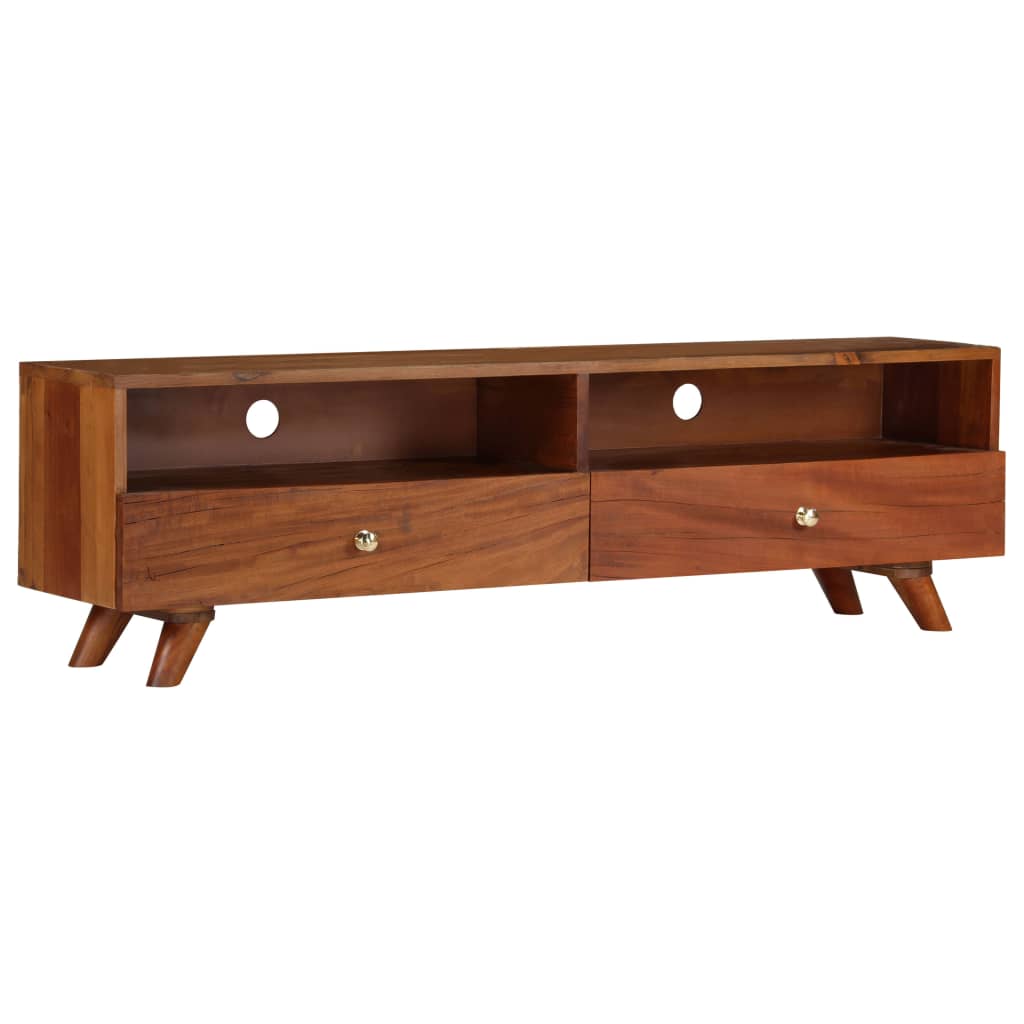 Dieser TV-Schrank aus Holz hat ein dezentes, praktisches Design im Retro-Stil und wird zu jeder Einrichtung passen. Das Möbelstück ist sehr stabil und langlebig und verfügt über 2 Schränke und 2 Regalböden, die Platz zur Aufbewahrung von Multimedia-Geräten, Spielkonsolen und Zeitschriften bieten. Dieser TV-Schrank kann auch als Beistellschrank, HiFi-Schrank, usw. verwendet werden. Der TV-Schrank ist aus massivem Altholz gefertigt, das aus Balken, Fußböden und Stützbalken alter Gebäude stammt und aus verschiedenen Holzarten wie Indisches Kiefer, Teak, Buche, Eiche, Zeder, Mangoholz, Akazie usw. bestehen kann. Das bedeutet, dass das wiedergewonnene Holz die Eigenschaften dieser verschiedenen Holzarten beibehält. Altholz ist bereits gealtert, verwittert und getrocknet, so dass es nicht schrumpft oder verbiegt. Kleine Unebenheiten am Holz, wie z.B. Nagellöcher oder Abnutzungen erzählen die Geschichte des Holzes und verleihen dem Möbelstück einen eigenen Charakter. Der TV-Schrank ist komplett handgefertigt, wobei ihm die echte Handwerkskunst einen eindrucksvollen Retro-Stil verleiht. Jeder Schritt, von der Zusammensetzung des Holzes über die Polierung und Bemalung bis hin zur Wachsung, wurde mit größter Sorgfalt ausgeführt. Wichtiger Hinweis: Die Farben variieren von Stück zu Stück, so dass jeder unserer TV-Schränke einzigartig ist. Die Lieferung erfolgt in zufälliger Reihenfolge. Der TV-Schrank ist einfach zu montieren.
