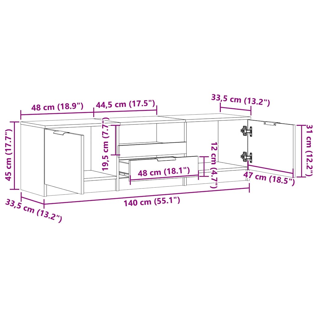 Dieser TV-Schrank bietet reichlich Stauraum und ist eine praktische sowie auffällige Ergänzung zu deinem Wohn- oder Schlafzimmer. Starkes und langlebiges Material: Holzwerkstoff ist ein langlebiges und robustes Material mit einer glatten Oberfläche, das gegen Feuchtigkeit, Verformung und Rissbildung beständig ist, wodurch es eine zuverlässigen Wahl für die Herstellung von Möbeln ist.Reichlich Stauraum: Dieses TV-Möbel bietet reichlich Stauraum, um deine Zeitschriften, Bücher, DVDs und Multimedia-Geräte ordentlich und griffbereit aufzubewahren.Stabile und robuste Oberplatte: Die robuste Oberplatte bietet den idealen Platz für deinen Fernseher und Stereoanlagen oder einige Dekoartikel wie Vasen oder Topfpflanzen.Pflegeleicht: Dank seiner glatten Oberfläche lässt sich das TV-Sideboard mit einem feuchten Tuch leicht reinigen und erfordert wenig Pflege.