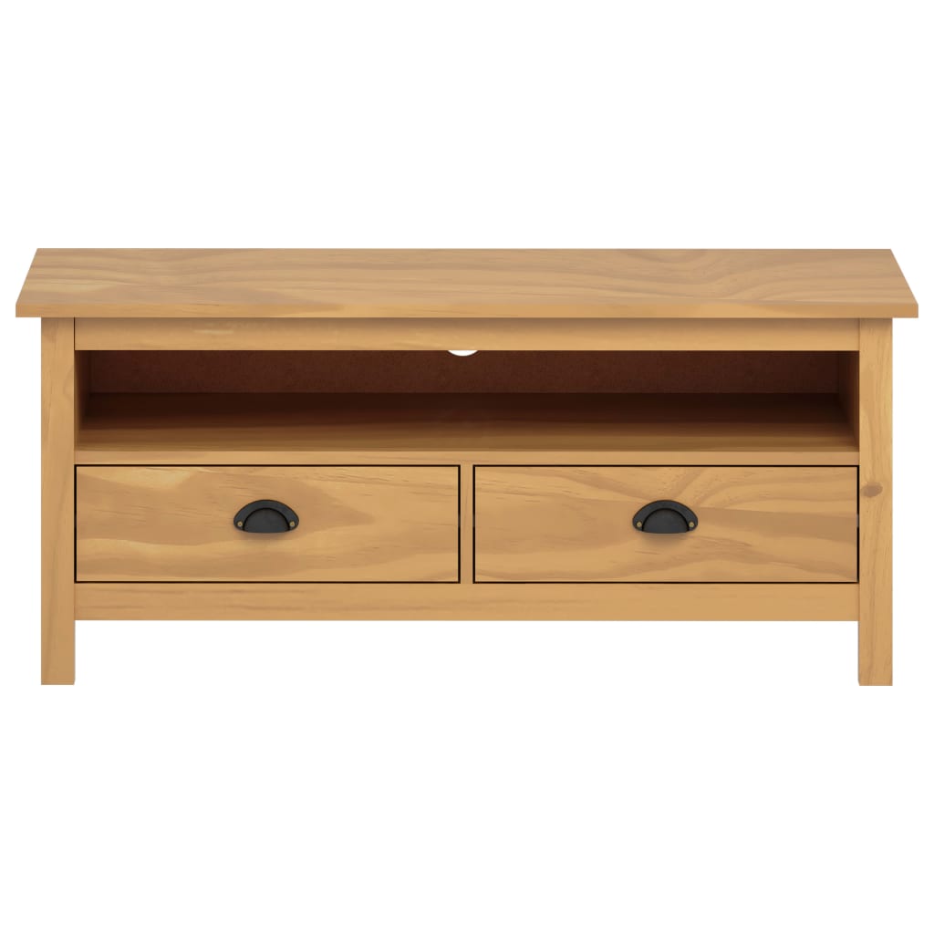 Wenn Sie Ihrer Inneneinrichtung einen schlichten Hauch von rustikalem Charme verleihen möchten, dann ist dieser Fernsehschrank aus Massivholz genau das Richtige für Sie! Dieses Lowboard ist aus massivem Kiefernholz gefertigt, was es stabil und robust macht. Der Stereoschrank ist mit 2 Schubladen mit Bechergriffen und 1 Fach ausgestattet und bietet dadurch viel Platz, um verschiedene Sachen ordentlich aufzubewahren oder zur Schau zu stellen. Wichtiger Hinweis: Die Farben variieren von Stück zu Stück und machen jeden dieser TV-Tische aus Holz einzigartig.