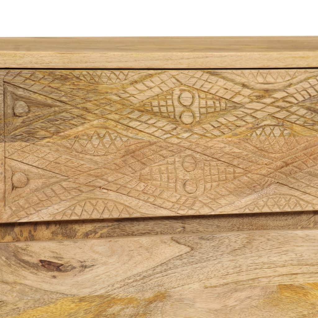 Der klassische Fernsehschrank aus Holz ist eine zeitlose Ergänzung für Ihr Zuhause. Das TV-Möbel besteht aus massivem Mangoholz und ist dadurch sehr robust und langlebig. Die robuste Oberplatte ist ideal, um Ihren Fernseher oder Ihre Stereoanlage und einige dekorative Gegenstände wie Vasen oder Topfpflanzen zu platzieren. Dieser Fernsehschrank mit 4 Schubladen bietet reichlich Stauraum, um Ihre DVD-Player, Spielkonsolen, Streaming-Geräte, Medienträger usw. übersichtlich aufzubewahren. Das fein geschnitzte Muster verleiht dem Sideboard einen einzigartigen Look. Jeder Schritt des Herstellungsprozesses wird mit größter Sorgfalt ausgeführt, sei es das Polieren, Streichen und Lackieren. Dieses Möbel wird zusammengebaut geliefert; eine Montage ist nicht erforderlich. Wichtiger Hinweis: Farbe und Holzmaserung können von Artikel zu Artikel variieren, wodurch jedes Möbelstück einzigartig ist. Die Lieferung erfolgt nach dem Zufallsprinzip, wodurch die Exklusivität und Individualität deines Produkts gewährleistet wird.