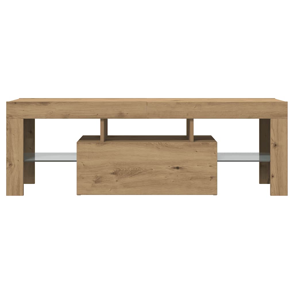 Mit seinem trendigen und dennoch praktischen Design wird dieses robuste TV-Möbel ein echter Hingucker in jedem Zimmer sein.Langlebiges Material: Der Holzwerkstoff ist von außergewöhnlicher Qualität mit glatter Oberfläche und zeichnet sich außerdem durch Festigkeit, Stabilität und Widerstandsfähigkeit gegen Feuchtigkeit aus.RGB-LED-Leuchten: Dieser TV-Ständer ist mit RGB-LED-Leuchten ausgestattet, die über verschiedene Menüs verfügen, um die Farbe der Leuchten zu wechseln und die Farbe automatisch unterschiedlich einzustellen. Die LED-Leuchten unterstreichen den modernen Look und tragen zum trendigen Gefühl bei.Reichlich Stauraum: Dieses TV-Möbel bietet praktischen Stauraum unter der Tischplatte, sodass du kleinere Gegenstände ordentlich aufbewahren kannst.Präsentation: Die Oberplatte der TV-Konsole bietet auch den perfekten Platz für Bilderrahmen, Topfpflanzen und andere Dekoartikel.Gut zu wissen:Das Produkt verfügt über einen USB-Anschluss, für den eine zertifizierte 5V-USB-Stromquelle erforderlich ist (nicht im Lieferumfang enthalten).