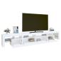 Mit seinem trendigen und zugleich praktischen Design wird dieser TV-Schrank mit LED-Leuchten definitiv zum Blickfang in Ihrem Zimmer. Starkes Material: Holzwerkstoff ist ein Material von außergewöhnlicher Qualität mit glatter Oberfläche, das sich durch Festigkeit, Stabilität und Feuchtigkeitsbeständigkeit auszeichnet. Mehrfarbige LED-Leuchten: Dieser TV-Ständer ist mit RGB-LED-Leuchten ausgestattet, die über verschiedene Menüs verfügen, um die Farbe der Leuchten zu wechseln und automatische Farbeinstellungen vorzunehmen. Die LED-Leuchten unterstreichen den modernen Look und tragen zum trendigen Gefühl bei.Reichlich Stauraum: Der TV-Schrank bietet reichlich Stauraum, um deine Zeitschriften, Bücher, Fernbedienungen und andere Kleinigkeiten gut organisiert und in Reichweite aufzubewahren.Präsentation: Die robuste Oberplatte des Medienschranks bietet den idealen Platz, um Dekoartikel, Fotorahmen oder Topfpflanzen zur Schau zu stellen. Hinweis:Das Produkt verfügt über einen USB-Anschluss, aber die zertifizierte 5-V-USB-Stromquelle ist nicht im Lieferumfang enthalten.Jedes Produkt wird mit einer Montageanleitung in der Verpackung für eine einfache Montage geliefert.