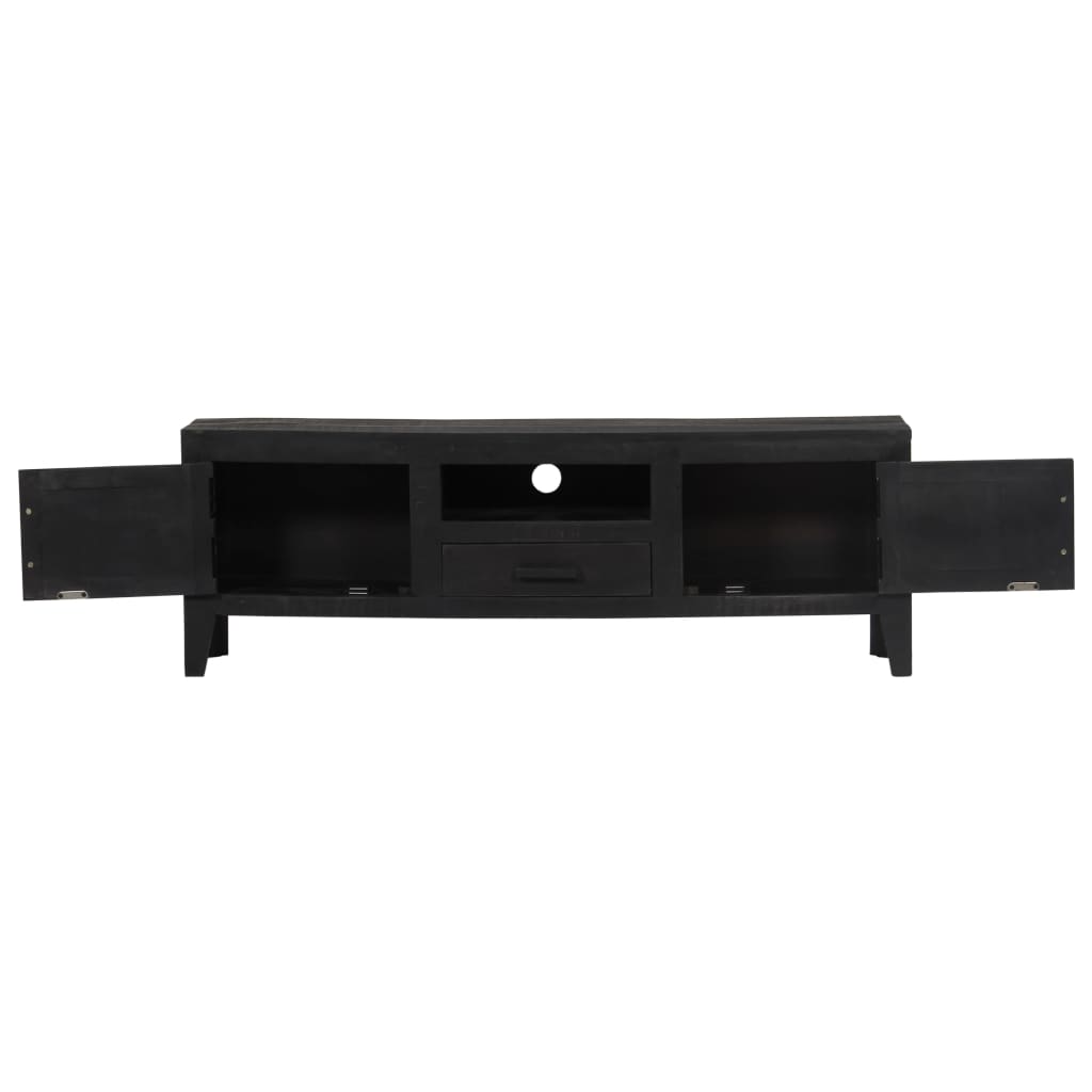 Mit seinem trendigen und dennoch praktischen Design wird dieser TV-Schrank aus massivem Mangoholz ganz bestimmt zum Hingucker in Ihrer Wohnung. Dieser TV-Schrank im Vintage-Stil aus massivem Mangoholz ist eine zeitlose Bereicherung für Ihr Zuhause. Mangoholz ist ein dichtes und robustes Hartholz mit schönen braunen oder goldenen Streifen und Konturen auf seiner Oberfläche. Jeder Schritt des Prozesses wird mit größter Sorgfalt durchgeführt, sei es beim Polieren, Anstreichen oder Lackieren. Er verfügt über 1 Schublade, 1 offenes Fach und 2 Türen zur Aufbewahrung von Kleinigkeiten und ein offenes Fach zur Aufbewahrung von Multimedia-Geräten, Spielekonsolen und Zeitschriften. Wichtiger Hinweis: Die Farben variieren von Produkt zu Produkt und somit ist jeder dieser TV-Schränke einzigartig. Die Lieferung erfolgt nach dem Zufallsprinzip.