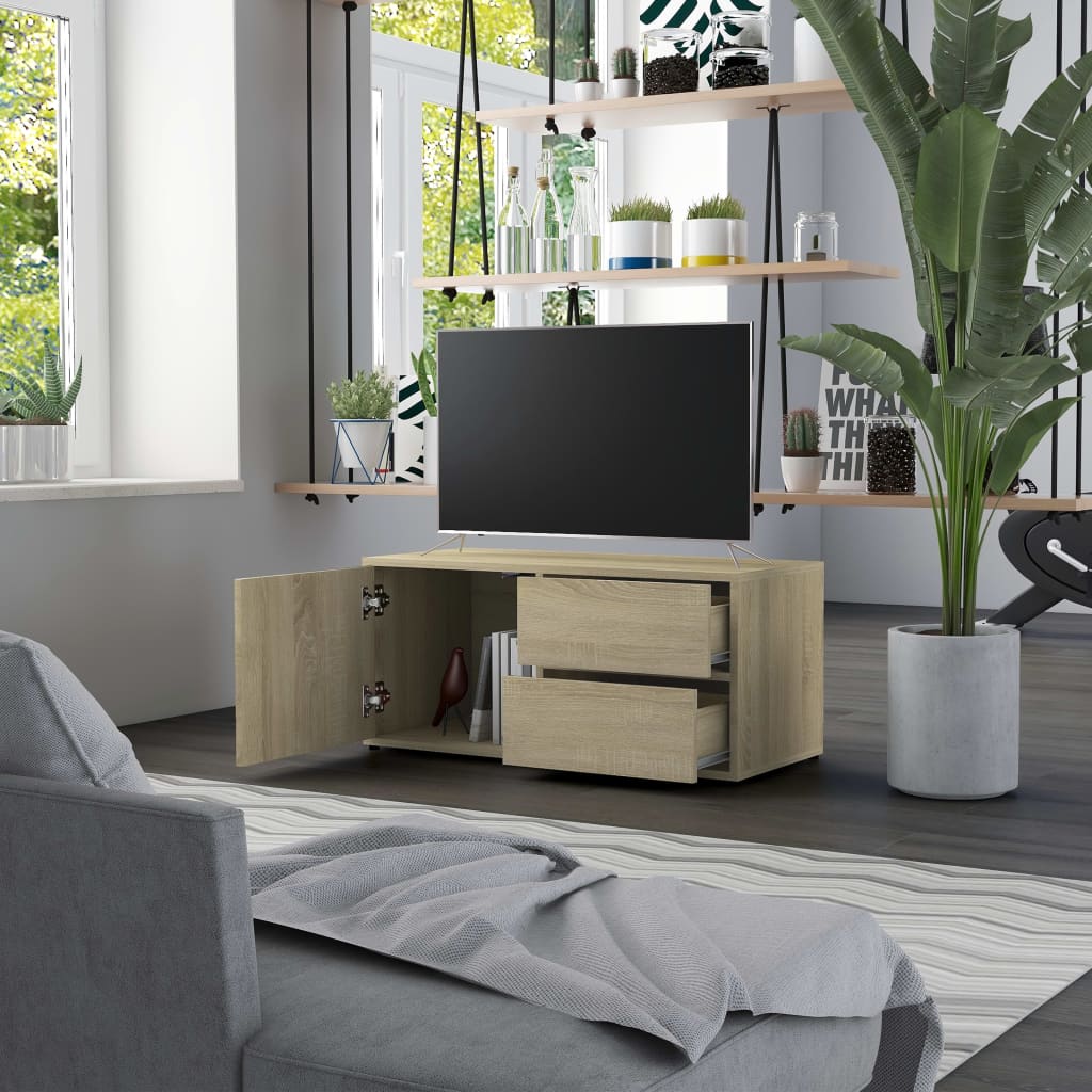 Dieser robuste TV-Schrank wird mit seinem trendigen und zugleich praktischen Design zum Mittelpunkt jedes Zimmers. Dieser TV-Schrank im klassischen Stil besteht aus hochwertigem Holzwerkstoff und ist eine zeitlose Ergänzung für dein Zuhause. Er verfügt über 2 Schubladen, 1 Fach mit 1 Tür, die ihn zu einem idealen Ort für die Aufbewahrung all deiner Zeitschriften, DVDs oder anderen Gegenstände machen. Der TV-Ständer lässt sich leicht mit einem feuchten Tuch reinigen. Der TV-Schrank ist auch mit dem mitgelieferten Montagematerial einfach zu montieren.