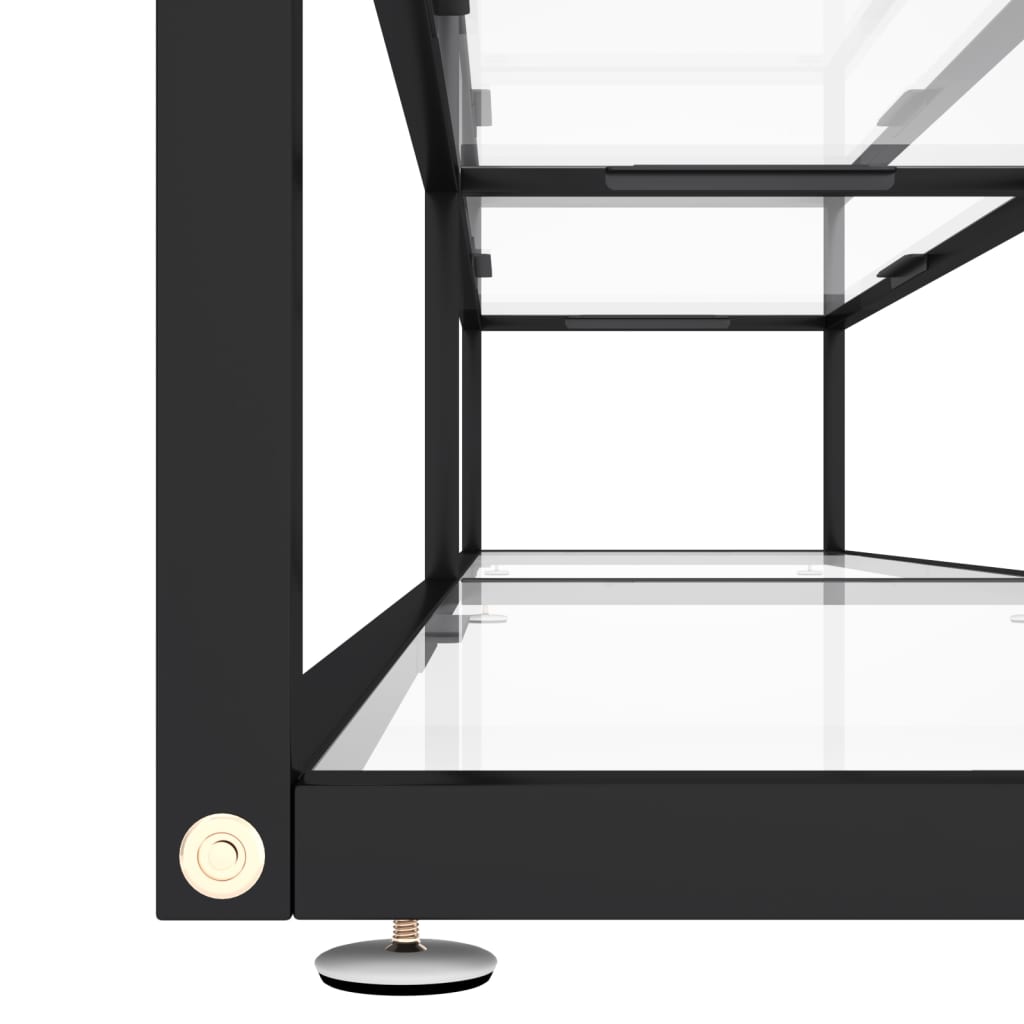 - Material: Hartglas, pulverbeschichteter Stahl