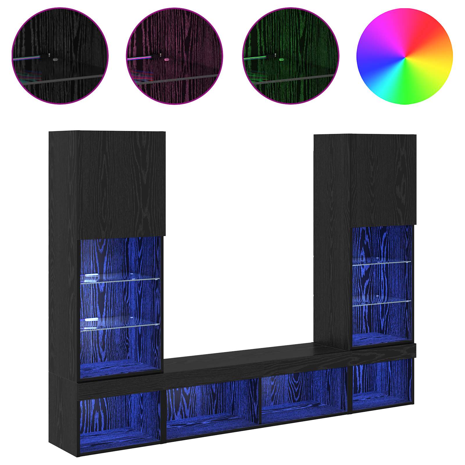 Dieses TV-Wandregal mit LED ist perfekt, um deinen Wohnraum in einen modernen Ort zu verwandeln. Es vereint Stil und Funktionalität und hat eine schlanke rechteckige Struktur, die zeitgenössische Deko super ergänzt und optimalen Platz schafft. Mit seinem wandmontierten Design nutzt die Einheit den Raum ganz clever aus, was sie für kleine oder große Wohnbereiche ideal macht. Die LED-Beleuchtung bringt eine schicke Note und sorgt für ein warmes Ambiente, das dein Seherlebnis verbessert. Nutze es, um deinen Fernseher zu präsentieren, Mediengeräte ordentlich zu verstauen und Deko stylisch in Szene zu setzen. Robuste Holzverarbeitung: Hergestellt aus abriebfestem Holzwerkstoff, garantiert dieses TV-Wandregal Langlebigkeit und hat eine glatte, schicke Oberfläche. Holzwerkstoff ist dafür bekannt, stabil und strapazierfähig zu sein, was es perfekt für vielbeschäftigte Haushalte macht. Flexibles Regalangebot: Mit Holz- und Glasregalen bietet diese Einheit viele Aufbewahrungsmöglichkeiten. Die Holzregale sind ideal für größere Gegenstände, während die Glasregale einen modernen Look haben und super für empfindliche Sachen oder Elektronik geeignet sind. Diese Kombination deckt alle Aufbewahrungsbedürfnisse stylisch ab. LED-Lichtleiste: Eingebaute LED-Streifen verleihen deinem Wohnraum eine schicke Note und erzeugen ein einladendes Licht, das das Design der Einheit betont. Die LED-Lichter funktionieren über USB, sind flexibel und energieeffizient und lassen sich leicht an jede Stimmung anpassen. Schwenktüren: Die Schwenktüren aus Holzwerkstoff verstecken die Gegenstände perfekt und sorgen für ein sauberes, ordentlichen Look. Diese Türen geben einfachen Zugang zu den gelagerten Sachen, damit dein Wohnraum immer ordentlich bleibt. Einfache Montage: Die Montage der Einheit benötigt zwei Personen und einen Schraubendreher, was für einen easy Aufbau sorgt. Das Design ermöglicht eine einfache Installation und sichert die Einheit fest an der Wand für eine stabile und sichere Aufbewahrung, die das ganze Jahr über funktioniert.