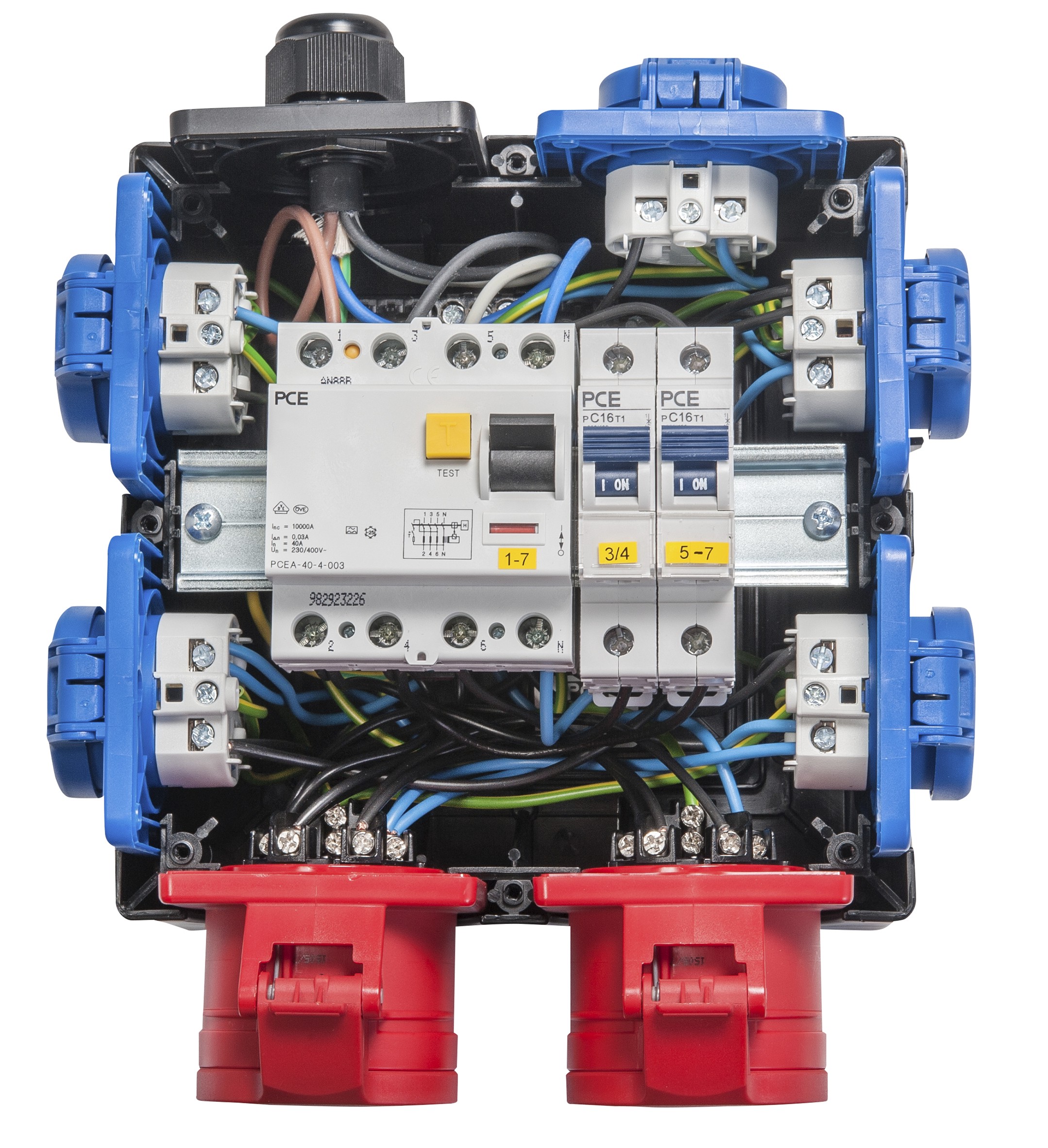 - die Schutzschaltgeräte sind unter einer transparenten, schlagfesten Polycarbonatabdeckung eingebaut