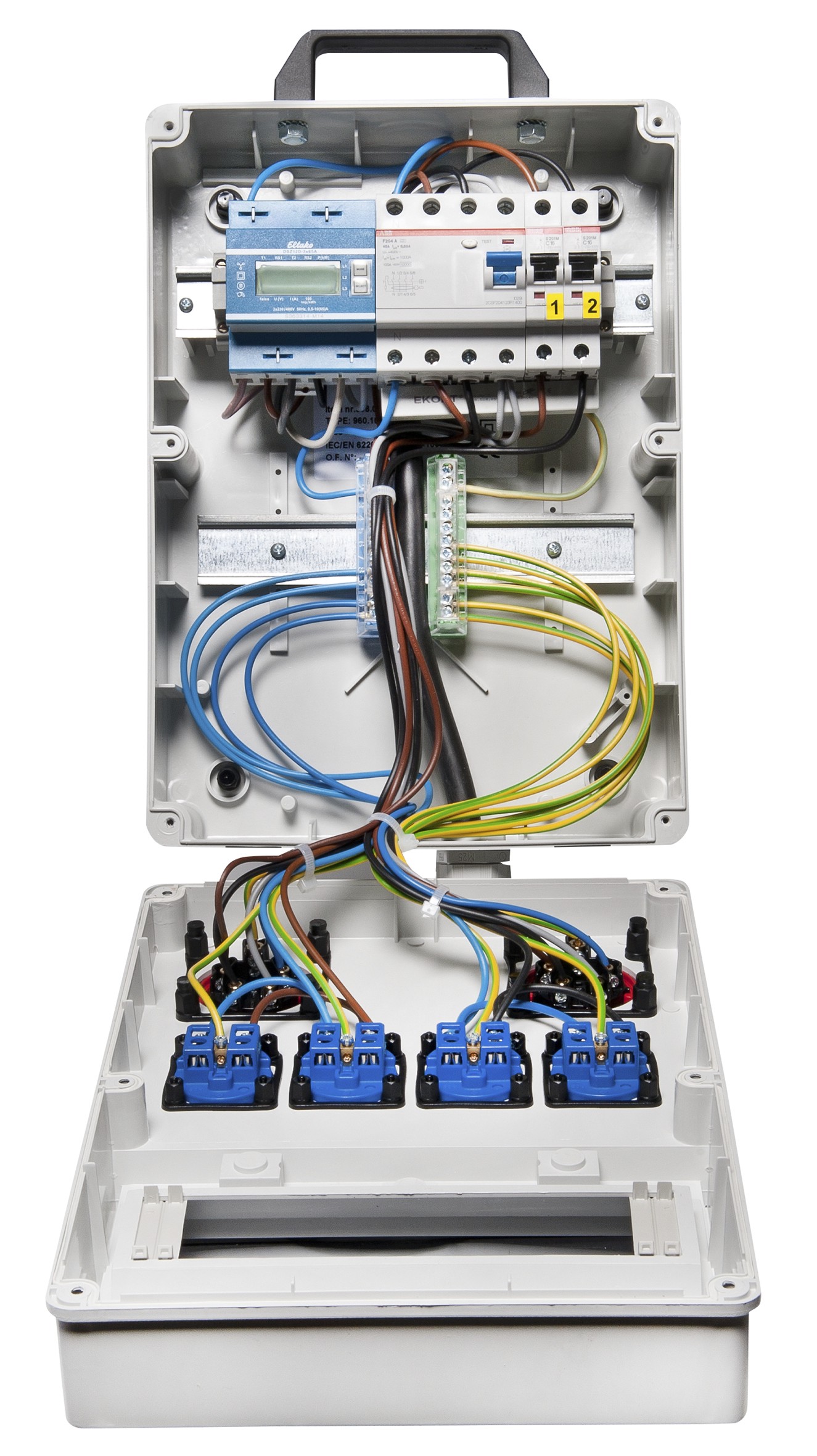 - die Schutzschaltgeräte sind unter einer transparenten, schlagfesten Polycarbonatabdeckung eingebaut