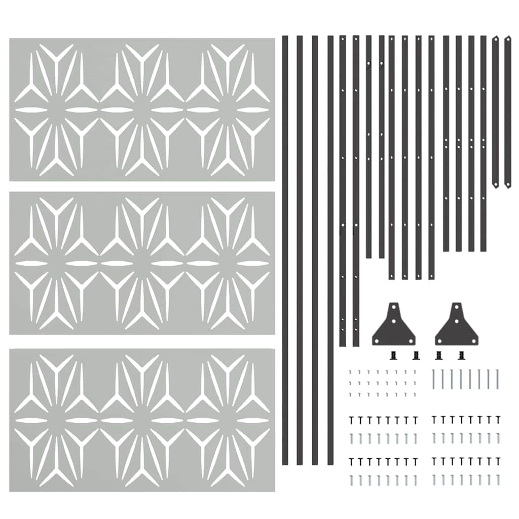 Dieses Außen-Panel aus verzinktem Stahl ist eine clevere Möglichkeit, deinen Außenbereich aufzuwerten, während du Grenzen setzt. Sein schlankes Design mit glatter Oberfläche und auffälligem Blütenmuster macht es zur perfekten Wahl für eine stylische Atmosphäre in Gärten und Außenbereichen. Langlebigkeit: Hergestellt aus hochwertigem verzinktem Stahl, ist dieses Zaun-Panel so konzipiert, dass es wetterfest ist und Langlebigkeit bietet, was es zur perfekten Wahl für den Außenbereich macht. Visuell ansprechendes Design: Das Blütenmuster sieht nicht nur gut aus, sondern bringt auch einen modernen Stil mit, der gut zu verschiedenen Außen-Dekoren passt. Vielseitige Nutzung: Egal, ob du Grenzen absteckst oder ein stilvolles Einzelstück schaffst, dieses Zaun-Panel hat viele Verwendungsmöglichkeiten, die deinen Außenbereich aufpeppen. Einfache Montage: Der Zusammenbau benötigt zwei Personen und ein paar Werkzeuge, sodass du schnell installieren und deinen neuen Zaun ohne Stress genießen kannst. Praktische Größe: Mit seiner großen Größe passt es perfekt in verschiedene Außenbereiche und eignet sich sowohl für kleine Gärten als auch für größere Anwesen.