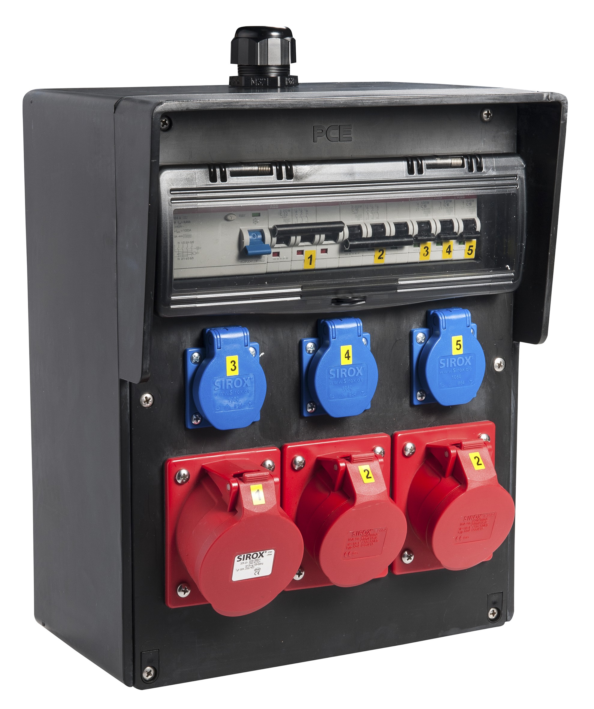 - die Schutzschaltgeräte sind unter einer transparenten, schlagfesten Polycarbonatabdeckung eingebaut