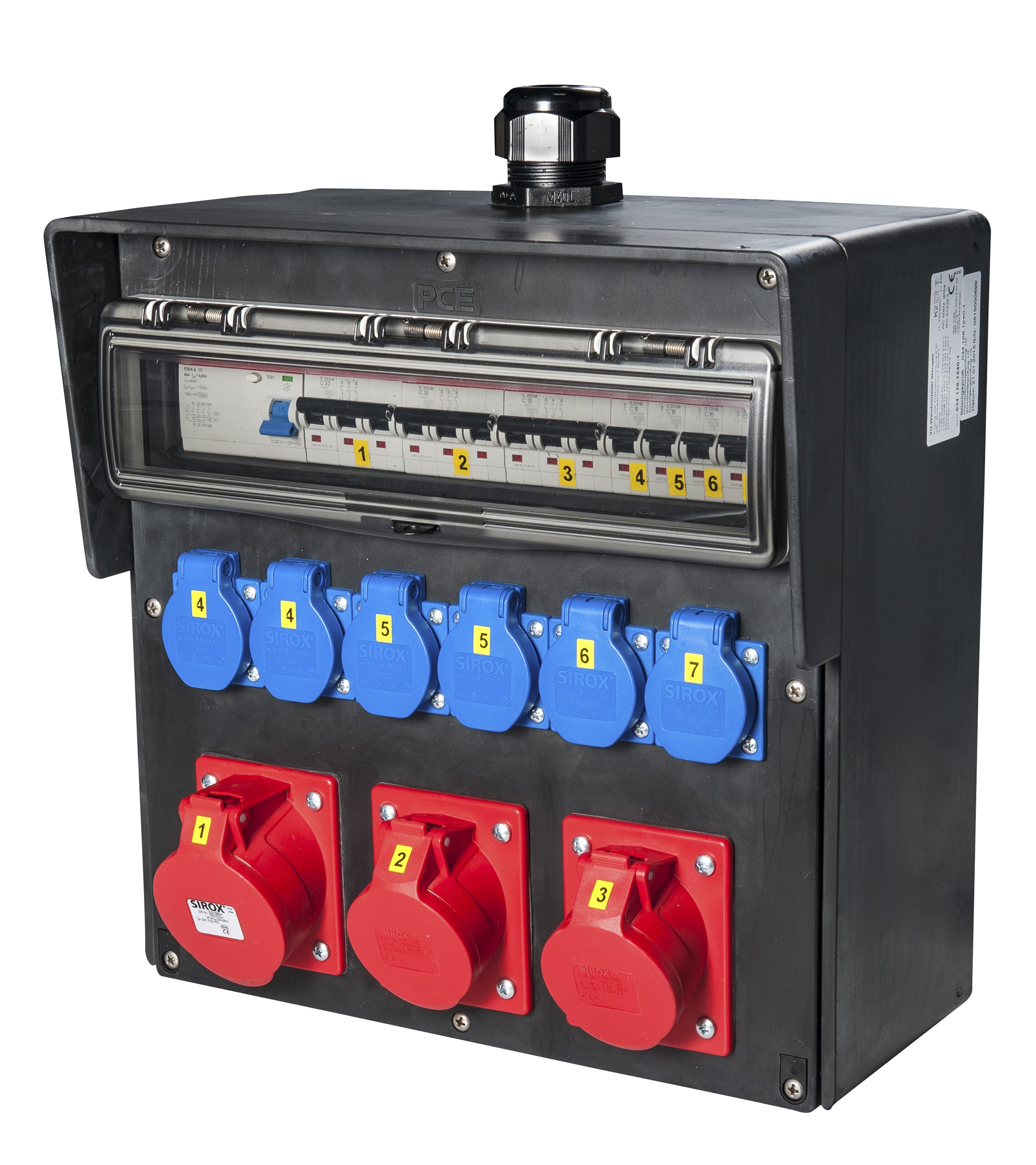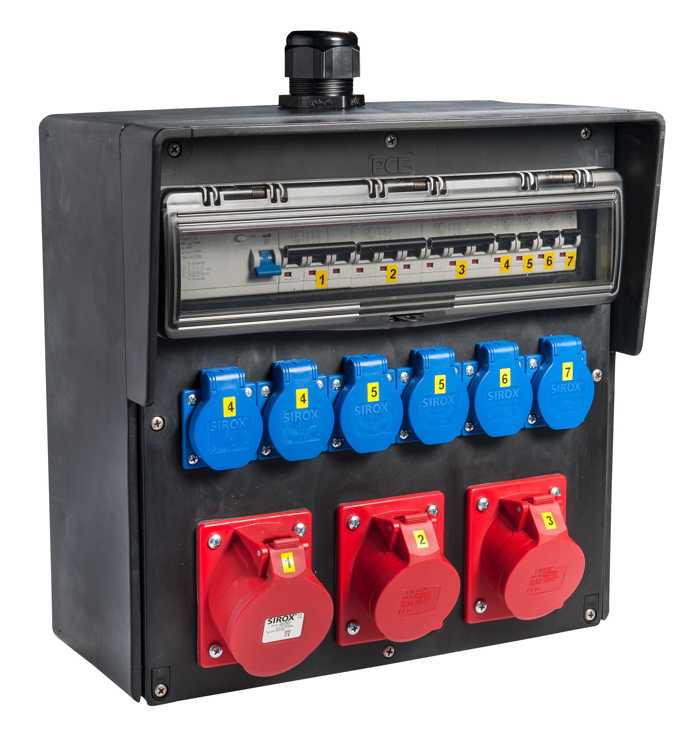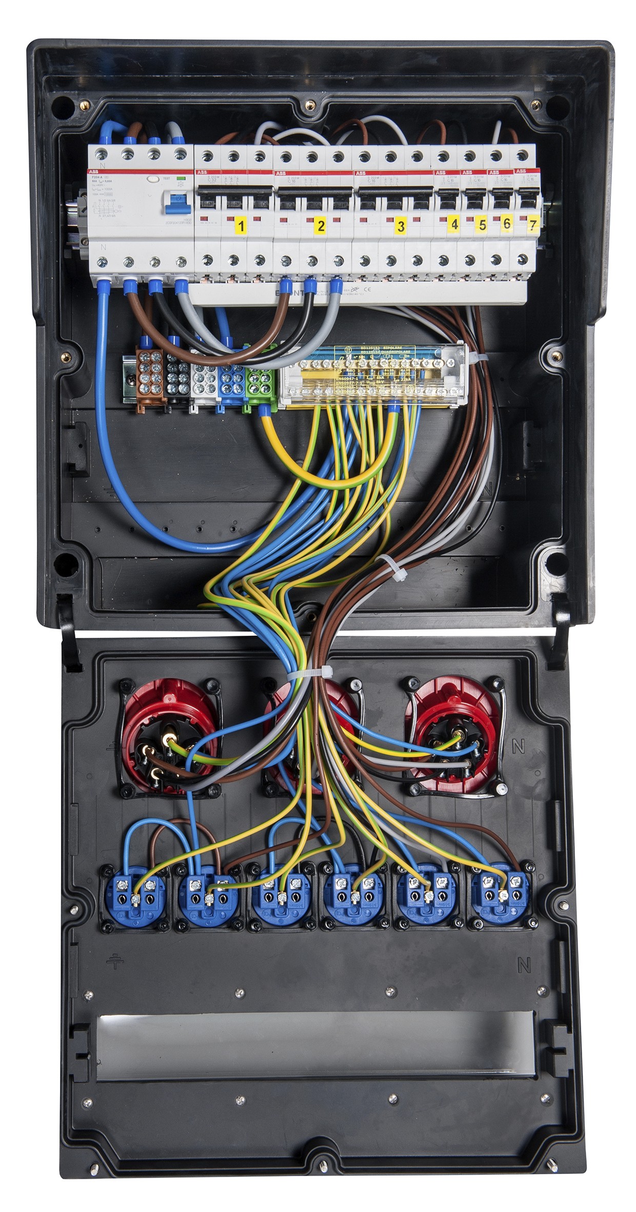 - die Schutzschaltgeräte sind unter einer transparenten, schlagfesten Polycarbonatabdeckung eingebaut