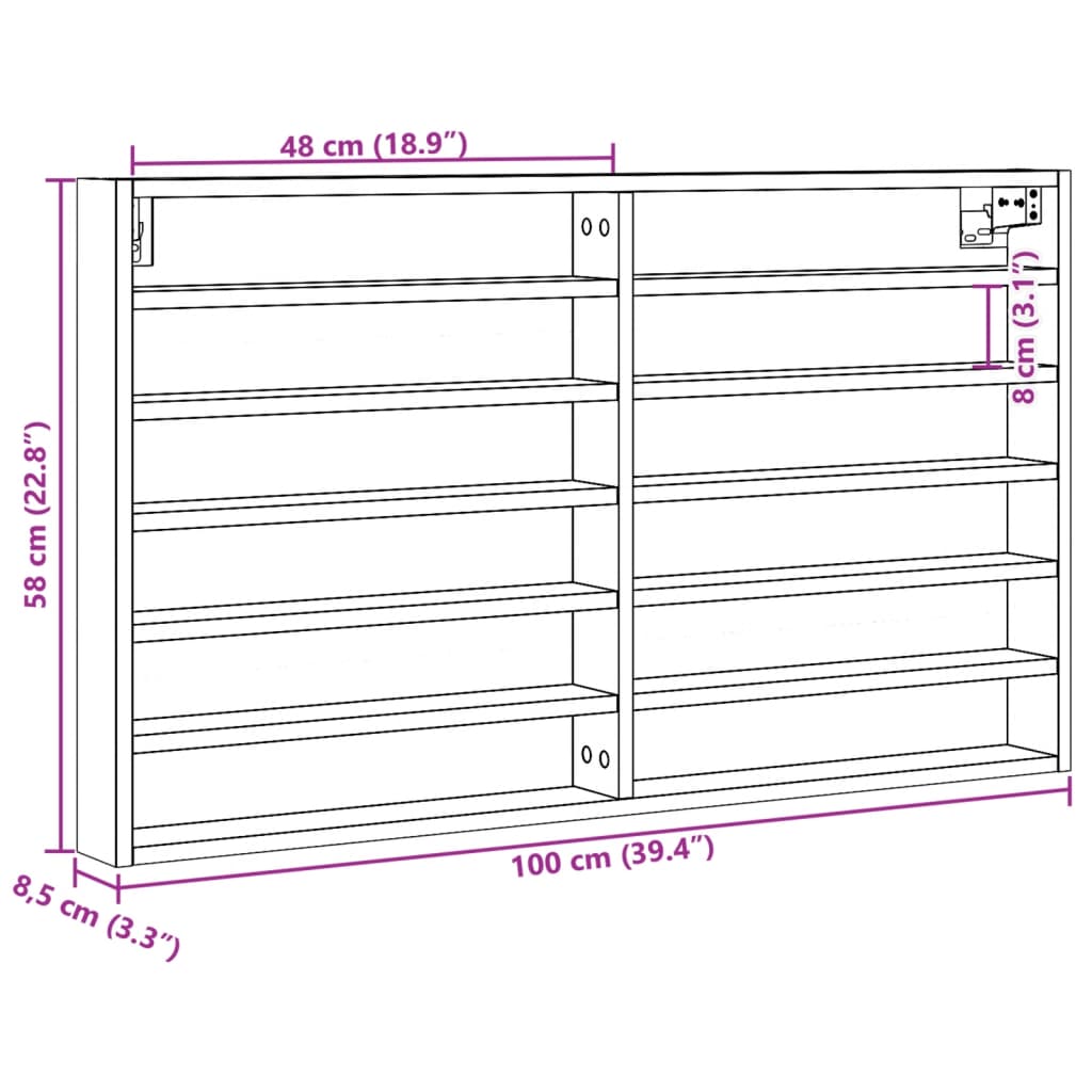 - Abmessungen: 100 x 8,5 x 58 cm (B x T x H)