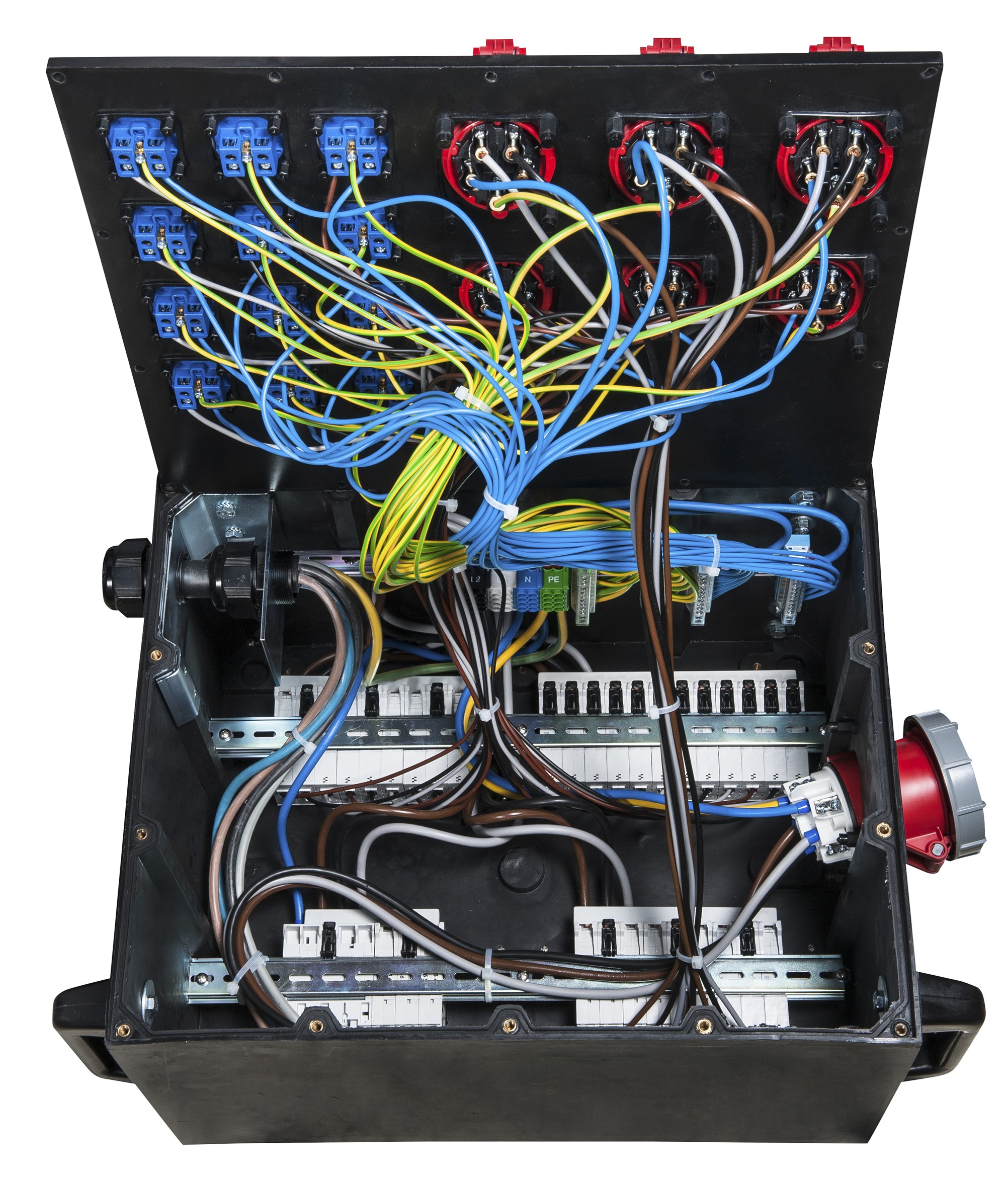 - Steckdosen mit selbstschließenden Klappdeckeln aus schlagfestem Polyamid 6
