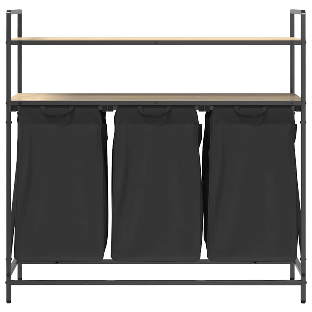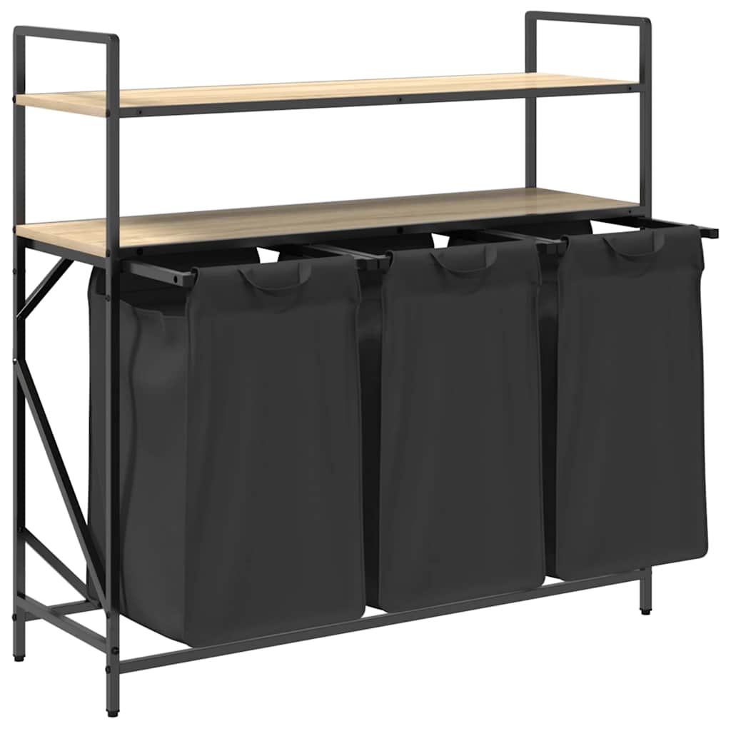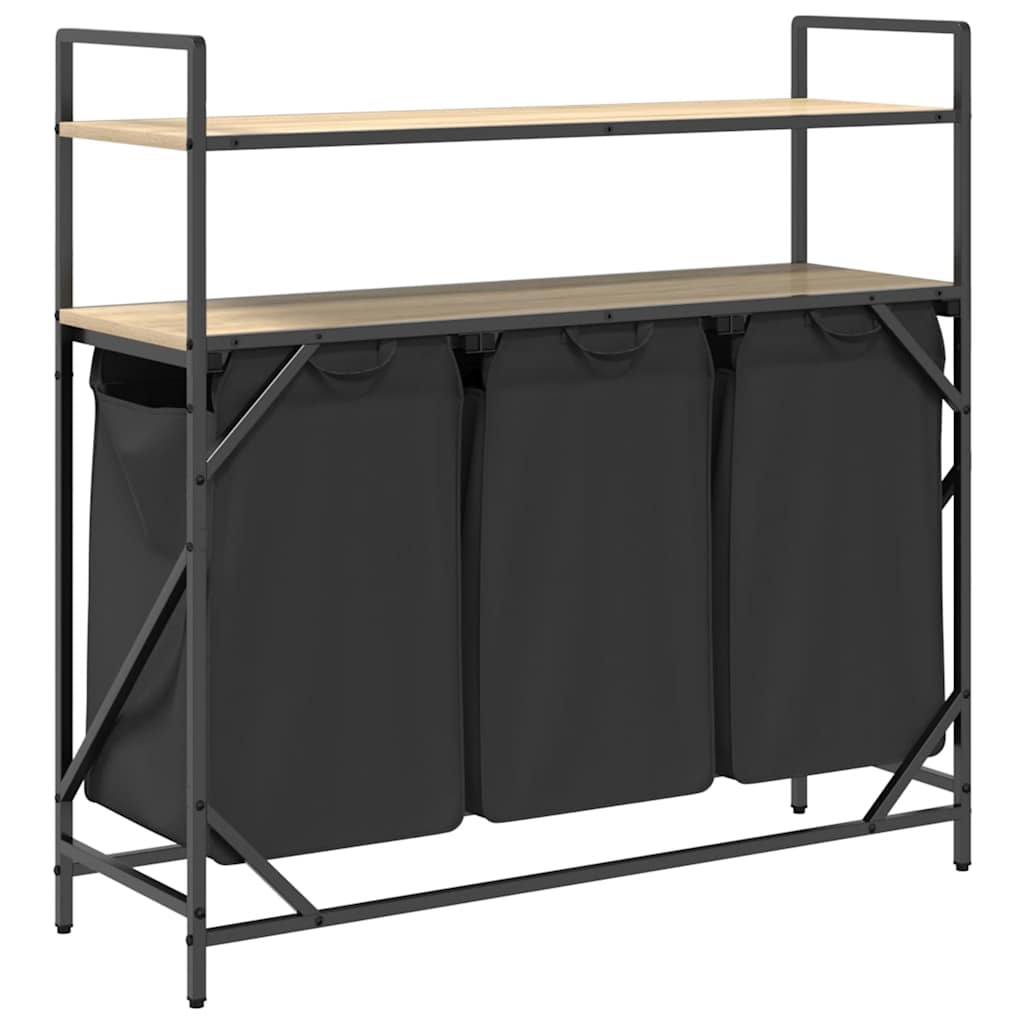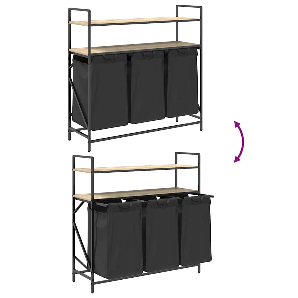 Der Wäschekorb bietet eine geräumige und praktische Aufbewahrungslösung mit herausziehbaren Beuteln, die das Ordnen Ihrer Wäsche mühelos machen. Wäschesortierer: Dieser Organizer bietet Platz für eine großzügige Wäscheladung pro Beutel und hilft dabei, Kleidungsstücke nach Farbe oder Stoffart zu sortieren, einen aufgeräumten Wäschebereich zu erhalten und auch Spielzeug und mehr aufzubewahren.Praktische herausziehbare Wäschebeutel: Die herausnehmbaren Wäschebeutel sind mit ausziehbaren Griffen und Klettverschlüssen zum einfachen Abnehmen und Herausziehen ausgestattet. Die verstärkten Bodenplatten helfen, die Form der Beutel zu erhalten und ein Durchhängen zu verhindern.Robuste und langlebige Struktur: Dieser Wäschekorb kombiniert einen Stahlrahmen mit langlebigem Holzwerkstoff und bietet so hervorragende Festigkeit, Verschleißfestigkeit und Stabilität.Obere Ablagefläche: Der Wäschekorb verfügt über zusätzliche Ablagen und bietet so eine praktische Lösung, um Ihre wichtigsten Dinge griffbereit zu haben. Perfekt zur Aufbewahrung von Toilettenartikeln, Waschmitteln, Weichspülern oder sogar Dekorationsartikeln.Vielseitig und multifunktional: Dieses Regal ist perfekt für die Waschküche, das Badezimmer oder das Schlafzimmer geeignet und verbindet nahtlos Funktionalität mit Stil. So bleibt Ihr Zuhause ordentlich und organisiert und passt gleichzeitig zu verschiedenen Einrichtungsstilen. Warnung:Um ein Umkippen zu verhindern, muss dieses Produkt mit der mitgelieferten Wandhalterung verwendet werden.