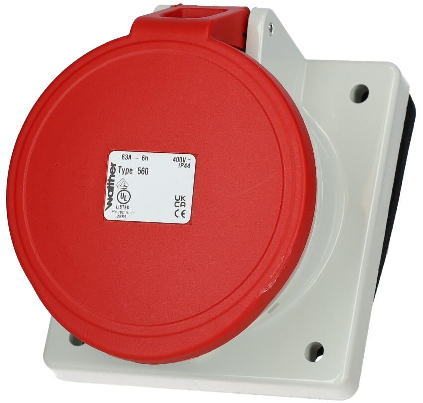 Walther 560 Anbaudose schräg, 63A, 5-Polig, 400V, 6h, IP44, Befestigungsmaß 85x77