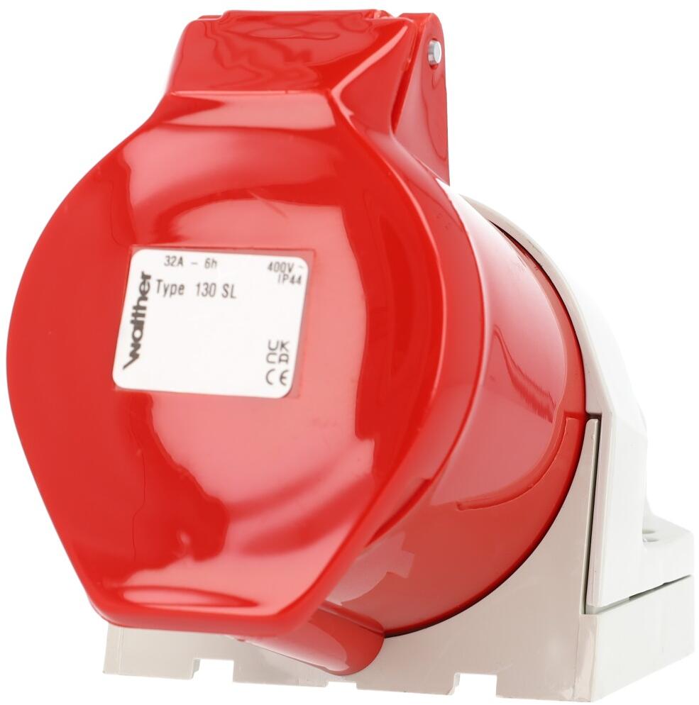 Walther Werke (130SL) Wandsteckdose, zur Außenbefestigung, 32 A 5-polig, schraubenlos, mit Kabeleinführung oben