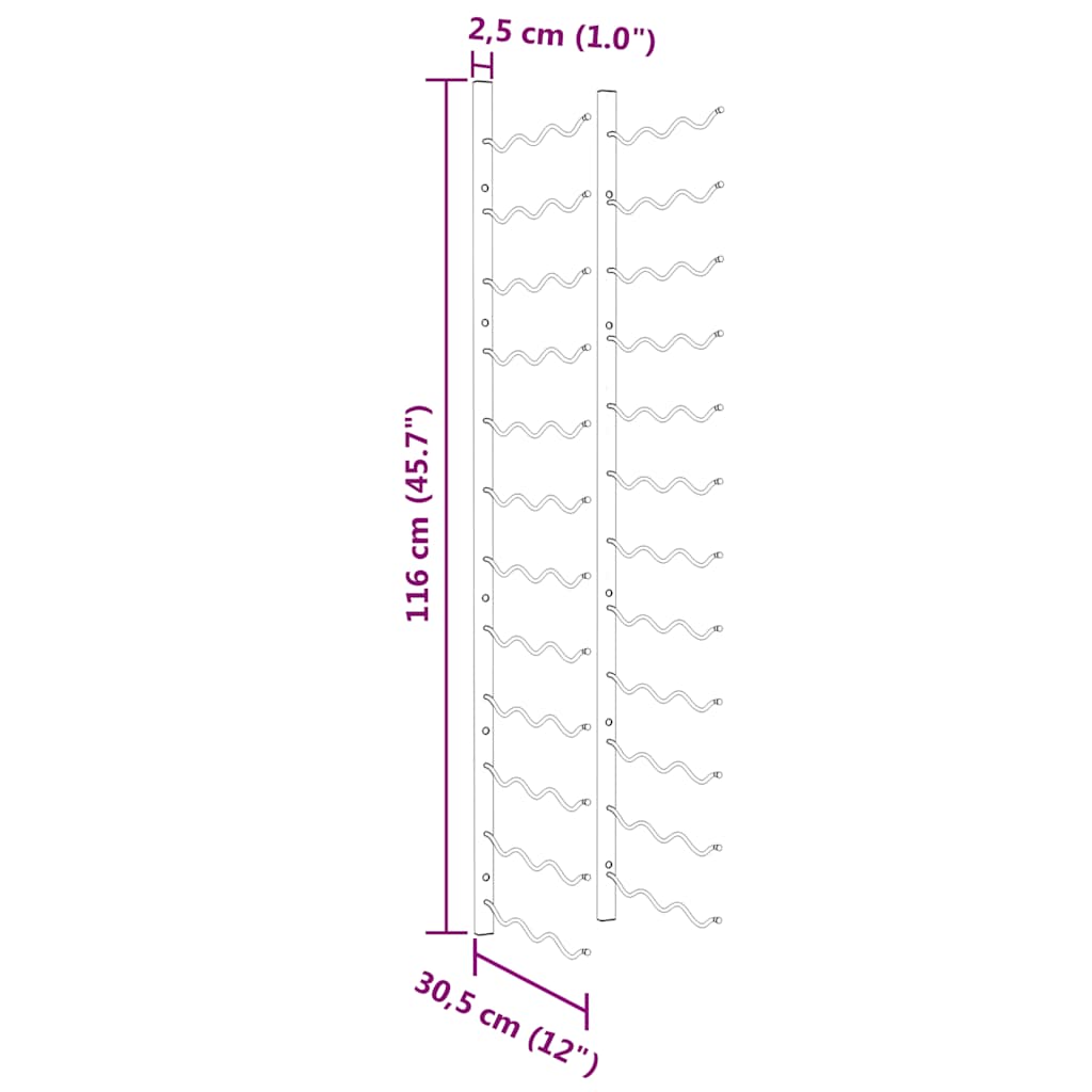 Dieses Weinregal ist eine praktische und perfekte Wahl zum Organisieren und Aufbewahren Ihrer Lieblingsweine! Viel Platz: Dieses Weinregal bietet Platz für bis zu 36 Flaschen Wein.Modernes Design: Dieses Weinregal ist eine trendige Lösung zur Aufbewahrung von Wein in modernen Küchen, Speisekammern und Bars.Hochwertig: Der Flaschenhalter ist aus beschichtetem Eisen gefertigt und dadurch extrem langlebig und pflegeleicht! Außerdem ist seine Oberfläche sehr glatt, was ein Zerkratzen der Flasche verhindert.Einfache Montage: Der Weinständer lässt sich mit dem mitgelieferten Montagematerial leicht an der Wand befestigen. Hinweis: Weinflaschen sind nicht im Lieferumfang enthalten.