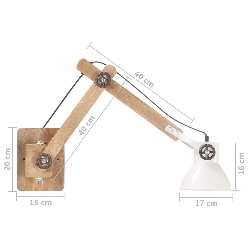 Diese Wandlampe bringt eine industrielle Vintage-Note in Schlafzimmer, Flur oder Wohnzimmer. Mit einem Arm aus massivem Mangoholz und einem Lampenschirm aus Eisen versehen, ist diese Wandleuchte sehr langlebig. Dank des verstellbaren und flexiblen Arms lässt sie sich in jeder beliebigen Höhe fixieren. Darüber hinaus tragen das natürliche Finish des Holzrahmens mit der weißen Pulverbeschichtung des Lampenschirms zum Industriestil der Lampe bei. Diese Leselampe wird mit Niederspannung versorgt und ist daher auch energiesparend. Bitte beachten: Diese Lampe im Industriestil weist Unvollkommenheiten am Lampenschirm auf, was die Lampe einzigartig macht und ihr durch die raue industrielle Optik ihren ganz eigenen Charakter verleiht.