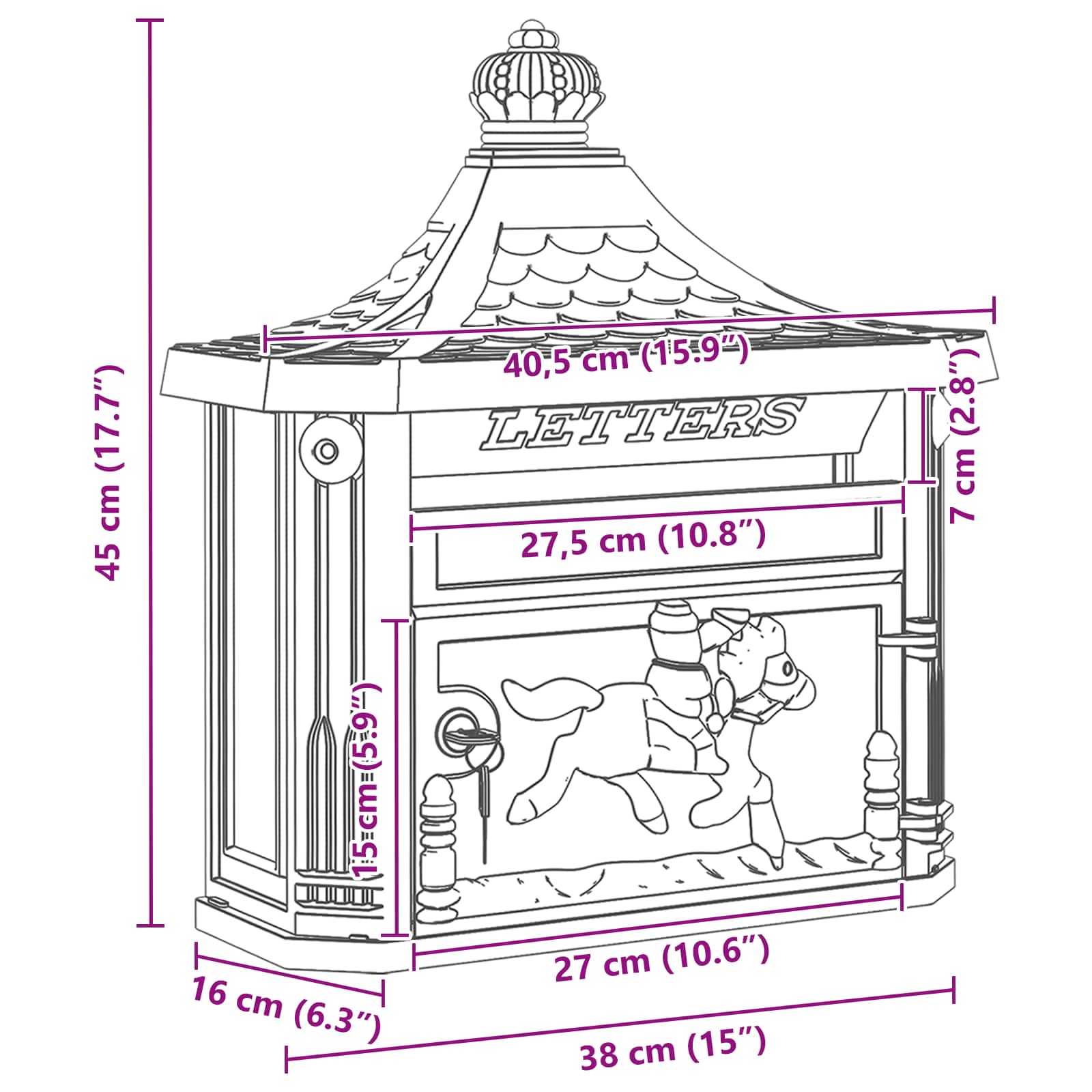 Der Vintage-Briefkasten für die Wand ist eine tolle Mischung aus schick und praktisch. Er fügt jedem Garten oder jeder Terrasse einen Hauch von zeitloser Eleganz hinzu. Mit seinem nostalgischen Stil macht er nicht nur Eindruck, sondern bietet auch Sicherheit für deine Briefe und Pakete. Egal ob klassisch oder modern, sein Design passt perfekt in jede Umgebung und gibt deinem Eingang einen einzigartigen Touch. Gussaluminium-Konstruktion Für die Langlebigkeit wurde dieser Vintage-Briefkasten aus hochwertigem Gussaluminium gefertigt. Dieses Material hält super gut den verschiedenen Witterungen stand, sodass du dir keine Sorgen um die Haltbarkeit machen musst. Verlässliche Verriegelung Der Briefkasten hat ein sicheres Nockenschloss, das extra Schutz für deine Post bietet. Mit einem praktischen Rotationssystem sorgt er für einen einfachen, aber sicheren Zugang. So bleibt deine Korrespondenz sicher, bis du sie abholst ? perfekt für wichtige Lieferungen. Wasserdicht Er ist für den Außenbereich gemacht und schützt deine Briefe vor Nässe dank wasserdichter Materialien. So bleiben deine Sachen trocken, egal wie das Wetter wird. Vintage-Stil Der Briefkasten hat einen tollen Vintage-Look, der jedem Außenbereich das gewisse Etwas verleiht. Er passt zu verschiedenen architektonischen Styles und lässt deinen Eingangsbereich oder Garten stilvoller wirken. Einfache Wartung Die Pflege ist einfach, du brauchst nur ein feuchtes Tuch, um ihn sauber zu halten. So bleibt er immer im besten Zustand, und du hast mehr Zeit, um ihn zu genießen.